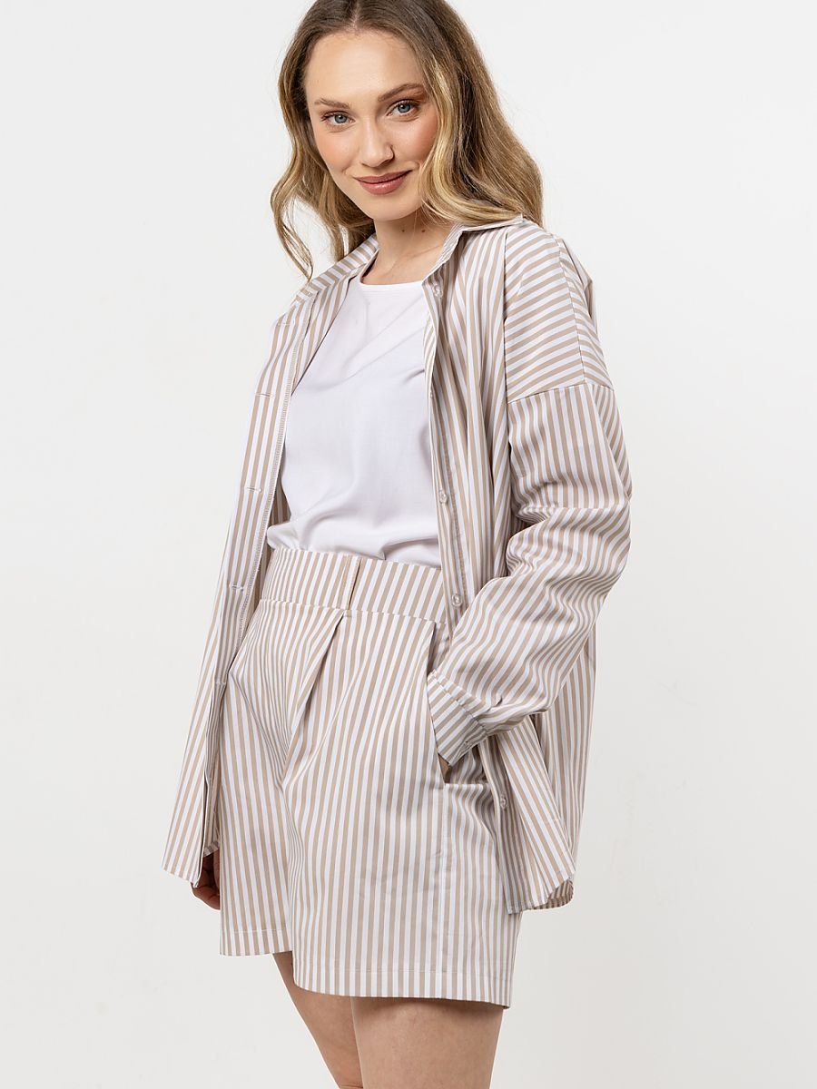 Klasyka w nowoczesnym wydaniu, ta koszula to idealne połączenie elegancji i komfortu. Lekka, przewiewna tkanina zapewnia wygodę przez cały dzień, a luźny krój nadaje jej swobodny, ale stylowy charakter. Stójka z kołnierzykiem dodaje subtelnej elegancji, a długie rękawy z mankietami podkreślają klasyczny wygląd. Guziki na całej długości pozwalają na różnorodne stylizacje. Dobierając do luźnej koszuli spodenki z tej samej tkaniny stworzysz wygodny, sportowy i stylowy letni komplet.