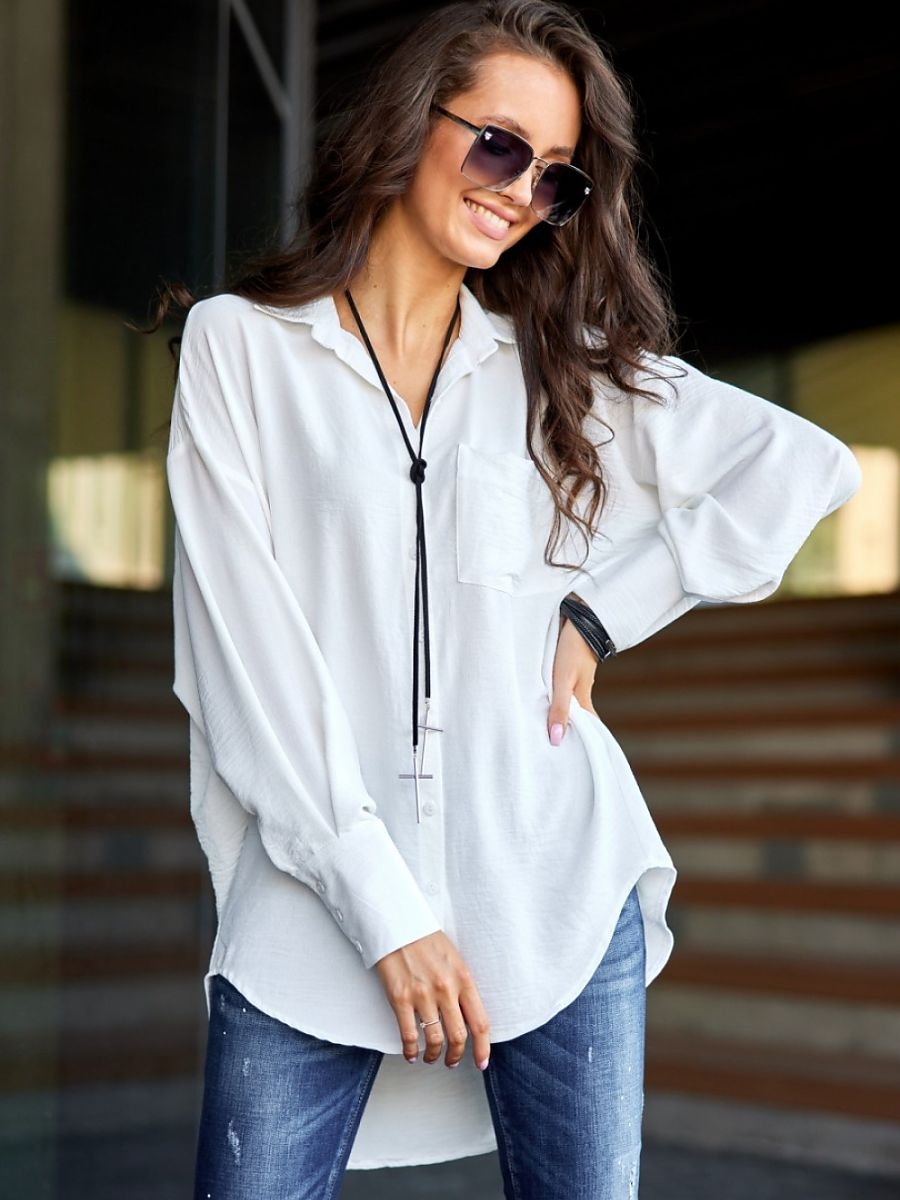 Odkryj wygodę i elegancję z naszą asymetryczną koszulą damską o kroju oversize. Ta wyjątkowa koszula wyróżnia się bufiastymi, długimi rękawami zakończonymi mankietami, które dodają jej niezwykłego charakteru. Zapinana z przodu na guziki, sprawia, że jest łatwa w zakładaniu i noszeniu. Dłuższy tył koszuli wprowadza element swobody i luźnego stylu, co czyni ją idealnym wyborem na każdą okazję. Urocza kieszonka z przodu dodaje jej charakteru, a klasyczny kołnierzyk wprowadza nutę klasyki. Przekonaj się, jak łatwo połączyć komfort i modny wygląd. Idealnie komponuje się z jeansami czy woskowanymi spodniami, co czyni ją wszechstronnym wyborem na wiele okazji ? od codziennych obowiązków po spotkania ze znajomymi. Można ją nosić zarówno do klasycznych szpilek, jak i do sportowego obuwia, co daje wiele możliwości stylizacyjnych. Bez względu na Twój rozmiar, ta koszula z pewnością pozwoli Ci poczuć się atrakcyjnie i komfortowo. To must-have w każdej garderobie! Produkt jest wyprodukowany i uszyty w Polsce.