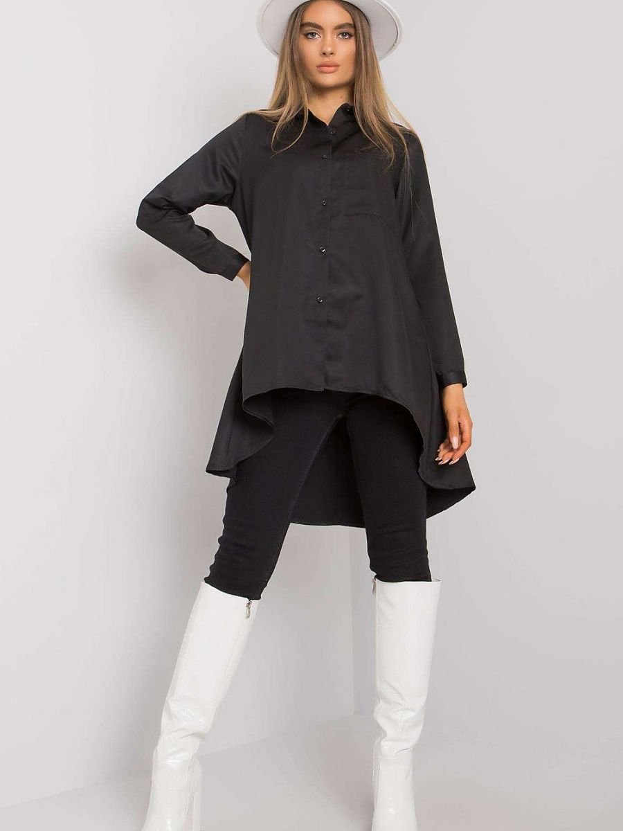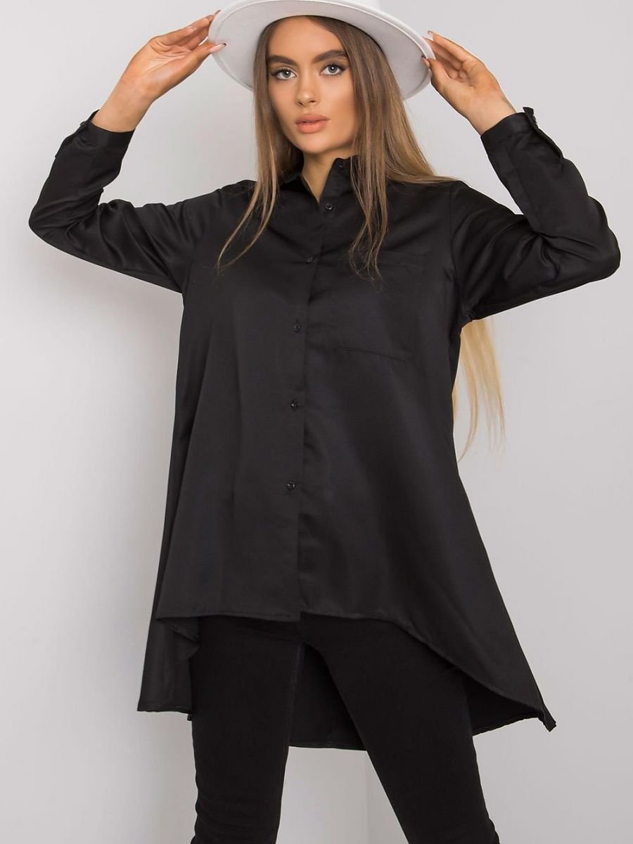 Czarna koszula z dłuższym tyłem zapinana na guziki. Idealna na wiele okazji.