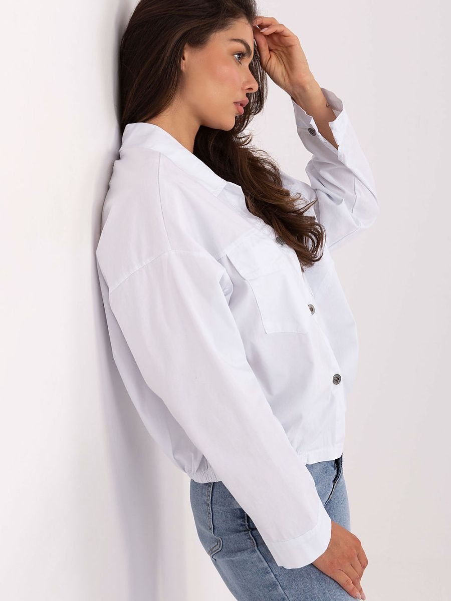 Damska koszula casualowa z kieszeniami to komfortowa i stylowa propozycja do codziennych zestawów. Wykonana z wysokiej jakości bawełny z dodatkiem elastanu, zapewnia wygodę, przewiewność oraz idealne dopasowanie do sylwetki. Gładki materiał i klasyczne zapięcie na guziki nadają jej uniwersalny charakter, który świetnie wpisuje się w casualowy styl. Model o krótszej długości z długim rękawem i kołnierzykiem posiada praktyczne kieszenie na przodzie z patkami, które dodają całości funkcjonalności. Z tyłu u dołu wszyto gumkę, dzięki czemu koszula lepiej układa się na sylwetce i subtelnie podkreśla talię. Świetnie komponuje się z jeansami, spódnicami czy szortami, tworząc wygodny i modny zestaw na co dzień.