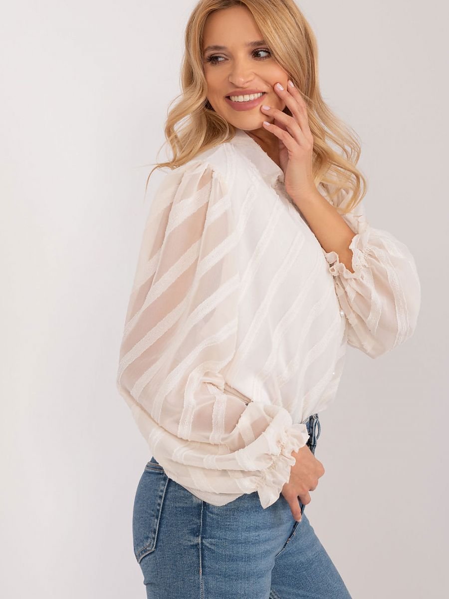 Ta klasyczna koszula damska, zapinana na guziki, to kwintesencja elegancji i stylu, idealna na różnorodne okazje, szczególnie do pracy i spotkań biznesowych. Jej urozmaicona faktura materiału dodaje jej niepowtarzalnego charakteru, przyciągając uwagę i podkreślając osobowość noszącej ją kobiety. Koszula ta posiada standardową długość, która gwarantuje komfort noszenia oraz odpowiednią proporcję do noszenia zarówno na spodnie, jak i do spódnicy. Długi rękaw wykonany z transparentnego materiału dodaje subtelności i delikatności, jednocześnie podkreślając elegancję całości. Stójka nadaje koszuli wyrafinowanego charakteru, dodając jednocześnie pewności siebie noszącej ją osobie. Dodatkowo, obecność podszewki sprawia, że koszula ta nosi się wyjątkowo przyjemnie i komfortowo, zapewniając uczucie luksusu i wygody przez cały dzień. Dzięki swojemu ponadczasowemu designowi i wysokiej jakości wykonania, ta koszula damska jest nie tylko elementem garderoby, ale również wyrazem pewności siebie i elegancji każdej kobiety, która ją nosi.