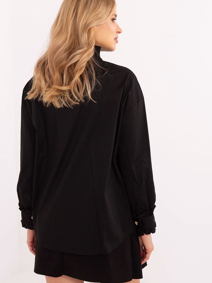 Elegancka damska koszula to idealny wybór na formalne okazje, wizytowe spotkania czy codzienne stylizacje do pracy. Wykonana z wysokiej jakości bawełny z dodatkiem elastanu, zapewnia komfort noszenia oraz doskonałe dopasowanie do sylwetki. Klasyczny, gładki wzór nadaje jej uniwersalnego charakteru, a standardowa długość sprawia, że świetnie komponuje się z różnorodnymi elementami garderoby. Subtelna falbana wzdłuż plisy dodaje jej wyjątkowego uroku i lekkości, przełamując minimalistyczny styl. Koszula zapinana na guziki to ponadczasowy element garderoby, który sprawdzi się w każdej eleganckiej stylizacji.