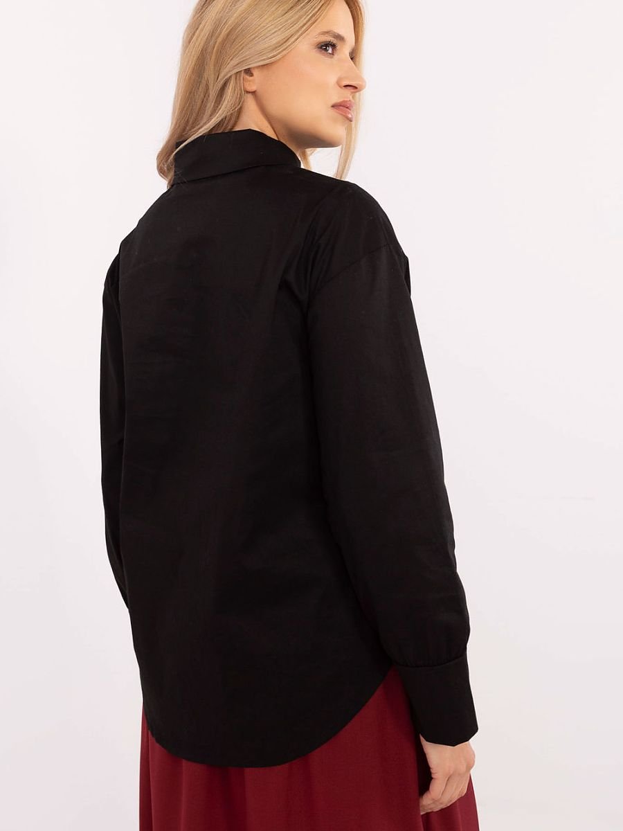 Klasyczna koszula damska o eleganckim charakterze, doskonała na wizytowe okazje, do pracy lub formalne spotkania. Wykonana z wysokogatunkowej bawełny, zapewnia komfort noszenia i profesjonalny wygląd. Koszula posiada klasyczny kołnierzyk oraz standardową długość, która pasuje zarówno do spodni, jak i spódnic. Długi rękaw sprawia, że świetnie sprawdza się o każdej porze roku. Gładki materiał nadaje jej uniwersalny i schludny wygląd. Wyjątkowym akcentem są trzy ozdobne guziki na przodzie, które przyciągają wzrok i dodają koszuli szyku. Pozostałe guziki kryte są elegancką listwą, co podkreśla minimalistyczny, profesjonalny design. To idealny wybór dla kobiet ceniących klasykę, subtelne detale i elegancję w codziennych stylizacjach.