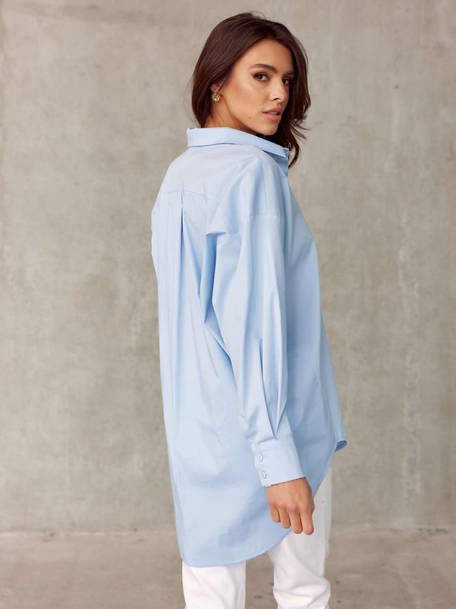 Koszula damska cechuję się oversizowym krojem, który będzie krył wszelkie niedoskonałości. Jej krótszy przód i dłuższy tył dodają jej wspaniałego, asymetrycznego charakteru. Koszula wykonana jest z wysokiej jakości tkaniny, która pozwoli na długi czas użytkowania. Jest dodatkowo wzbogacona o estetyczny kołnierzyk, mankiety i zapięcie z przodu na guziki. Guziki w kolorze produktu. Bogata gama kolorów zachwyci każdego. Produkt jest wyprodukowany i uszyty w Polsce.