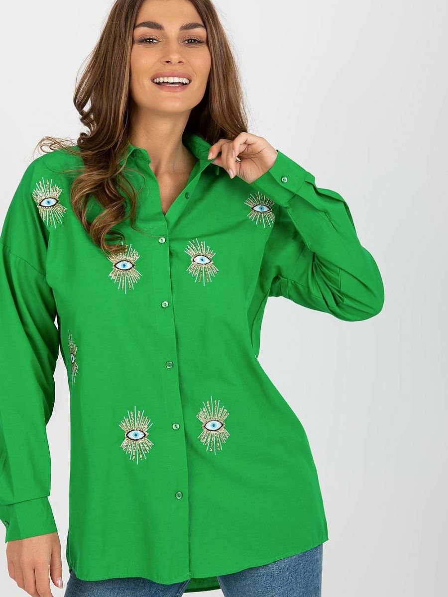 Koszula damska o luźnym kroju z długim rękawem, zapinana na guziki. Koszula posiada wyhaftowane ciekawe wzory.