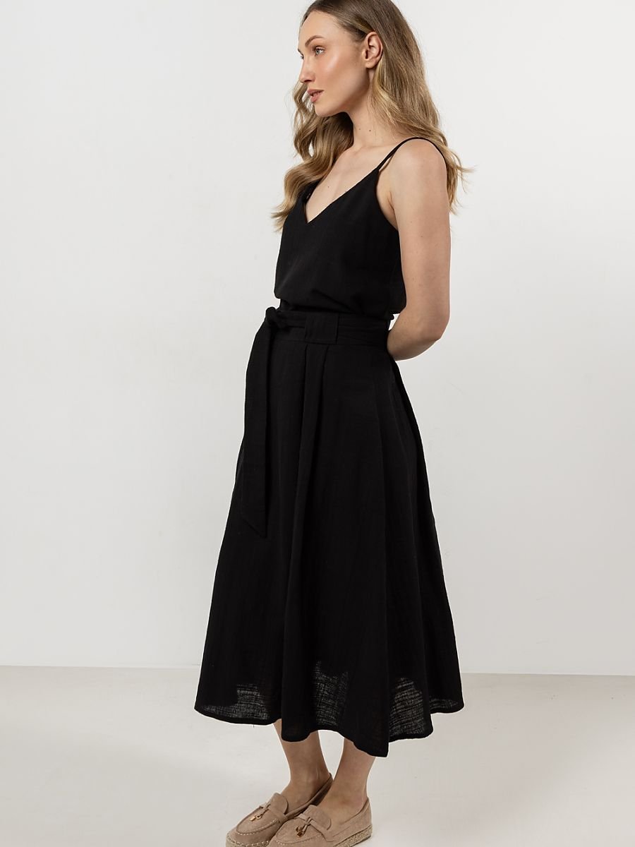 Minimalistyczny i uniwersalny, ten top to must-have na ciepłe dni. Wykonany z naturalnej, miękkiej bawełny, zapewnia przewiewność i komfort noszenia. Cienkie ramiączka subtelnie podkreślają ramiona, a długość do bioder sprawia, że doskonale komponuje się zarówno ze spódnicami, jak i spodniami. Świetnie sprawdzi się w codziennych i eleganckich stylizacjach. Połącz top ze spódnicą z tej samej tkaniny lub z bermudami. Stworzysz wygodny letni komplet.