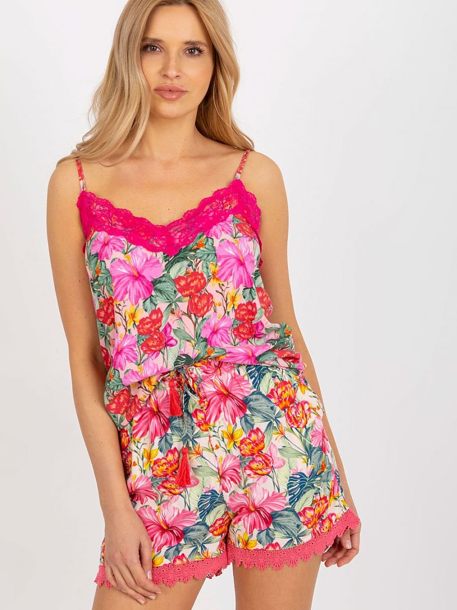 Koszulka damska na regulowanych ramiączkach oraz dekoltem w serek. Dekolt obszyty dekoracyjną koronką.