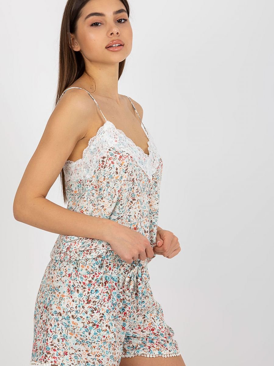 Koszulka damska na regulowanych ramiączkach oraz dekoltem w serek. Dekolt obszyty dekoracyjną koronką.