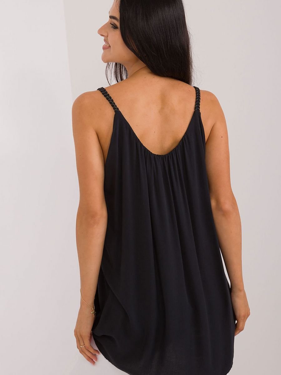 Casualowa bluzka damska, idealna na co dzień, wykonana z gładkiego materiału, którego dominującym składnikiem jest wiskoza. Zapewnia ona komfort i przewiewność, doskonałą na cieplejsze dni. Bluzka ma standardową długość i jest na ramiączkach, co dodaje jej lekkości i letniego charakteru. Posiada okrągły dekolt, który subtelnie eksponuje szyję. Marszczenia przy dekolcie dodają bluzce elegancji i delikatnego uroku. Dodatkowo, bluzka wyposażona jest w podszewkę, co zwiększa komfort noszenia i zapewnia lepsze dopasowanie. Idealna do codziennych stylizacji, łącząc styl z wygodą.