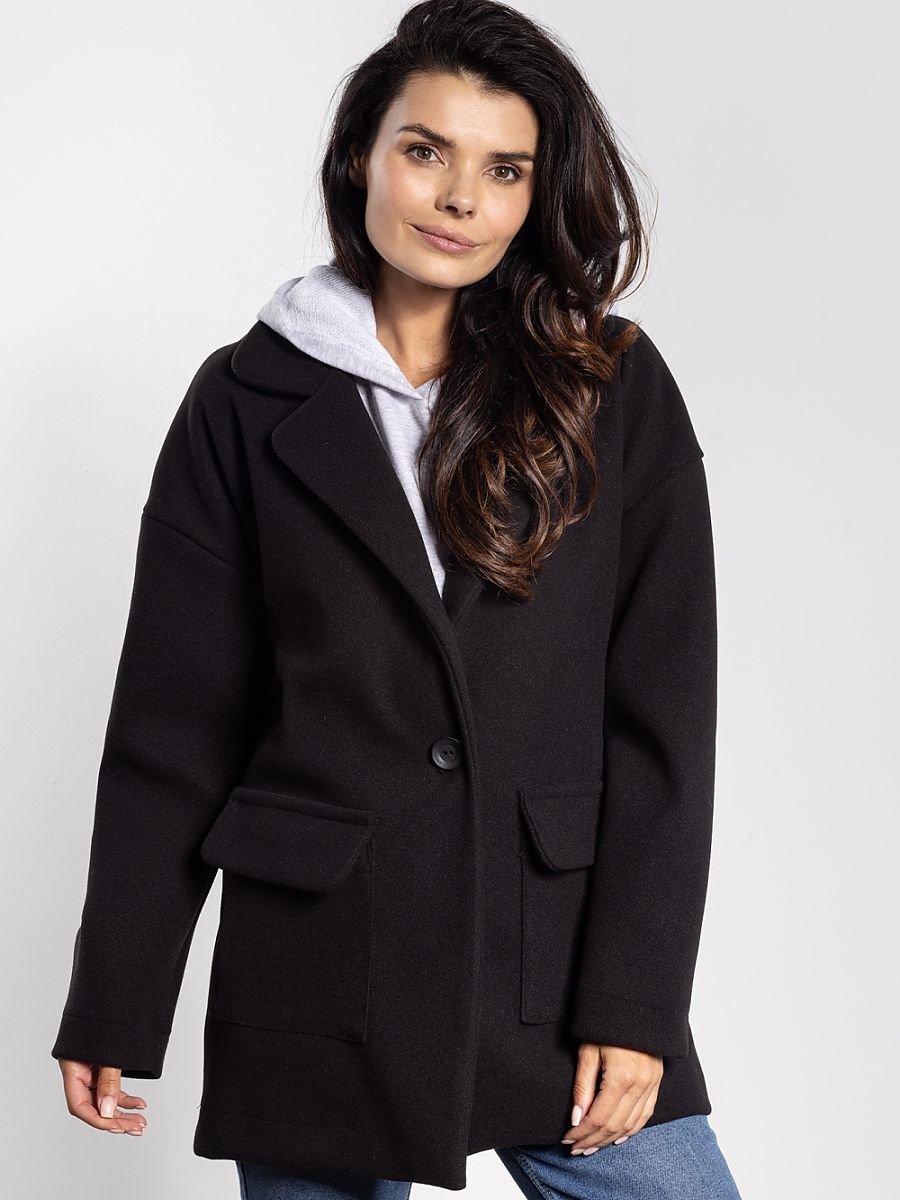 Stylowa kurtka damska oversize to połączenie minimalizmu i nowoczesnego designu. Luźny fason zapewnia komfort i swobodę ruchów, a praktyczne kieszenie z klapką zwiększają funkcjonalność. Zapięcie na guzik podkreśla prostą, elegancką linię, a lekko obniżona linia ramion nadaje kurtce modnego, nonszalanckiego charakteru. Model idealnie sprawdzi się w codziennych stylizacjach, zestawiony z jeansami, spodniami czy sukienką, tworząc uniwersalne i efektowne outfity na chłodniejsze dni.