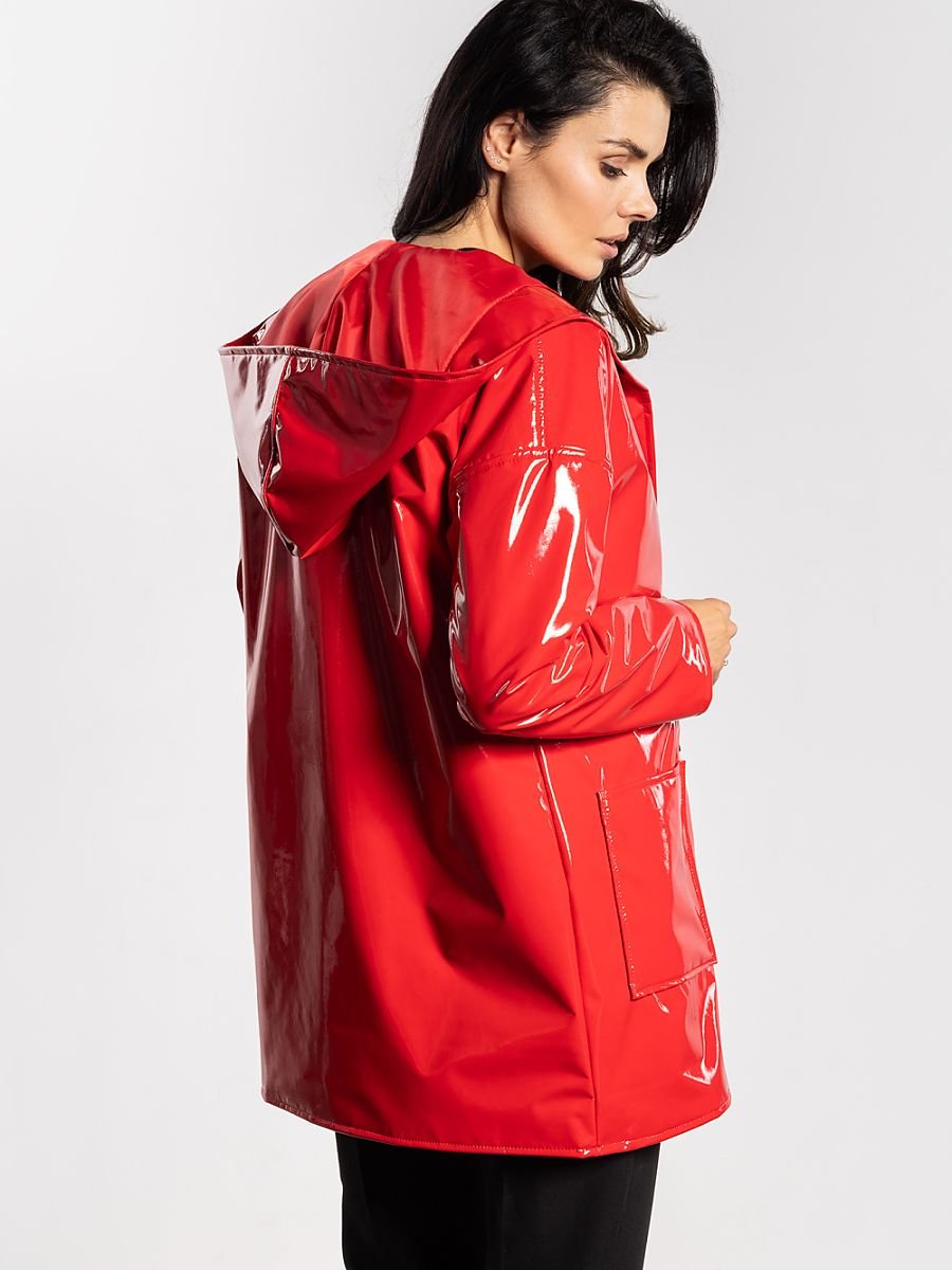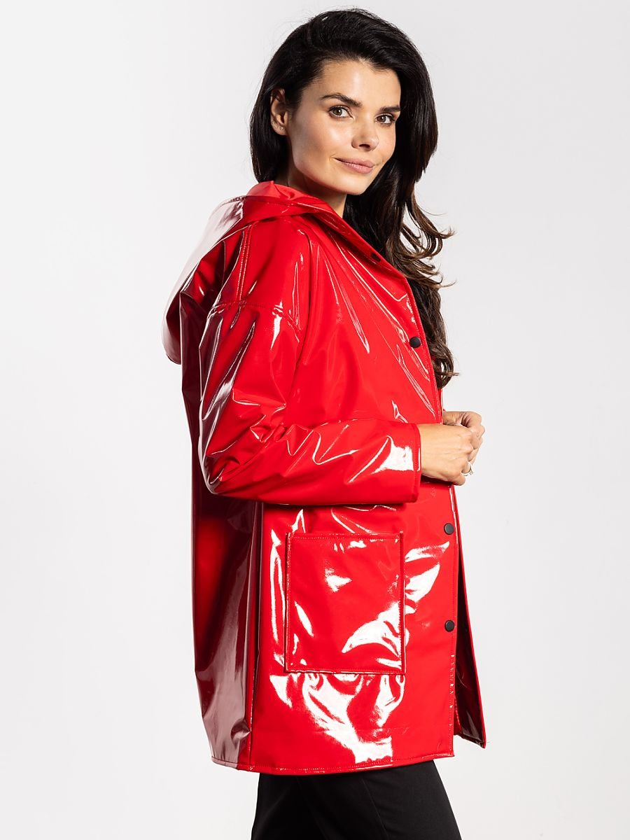 Lateksowa kurtka damska z kapturem to stylowa i funkcjonalna propozycja na jesień i wiosnę. Minimalistyczny, nowoczesny fason z praktycznymi kieszeniami sprawia, że model świetnie sprawdzi się w codziennych i casualowych stylizacjach. Połyskujące wykończenie dodaje charakteru każdej kreacji, a zapinanie na napy zapewnia wygodę i ochronę przed wilgocią. Polska produkcja gwarantuje wysoką jakość i staranne wykończenie, czyniąc kurtkę trwałą i modną przez sezon.