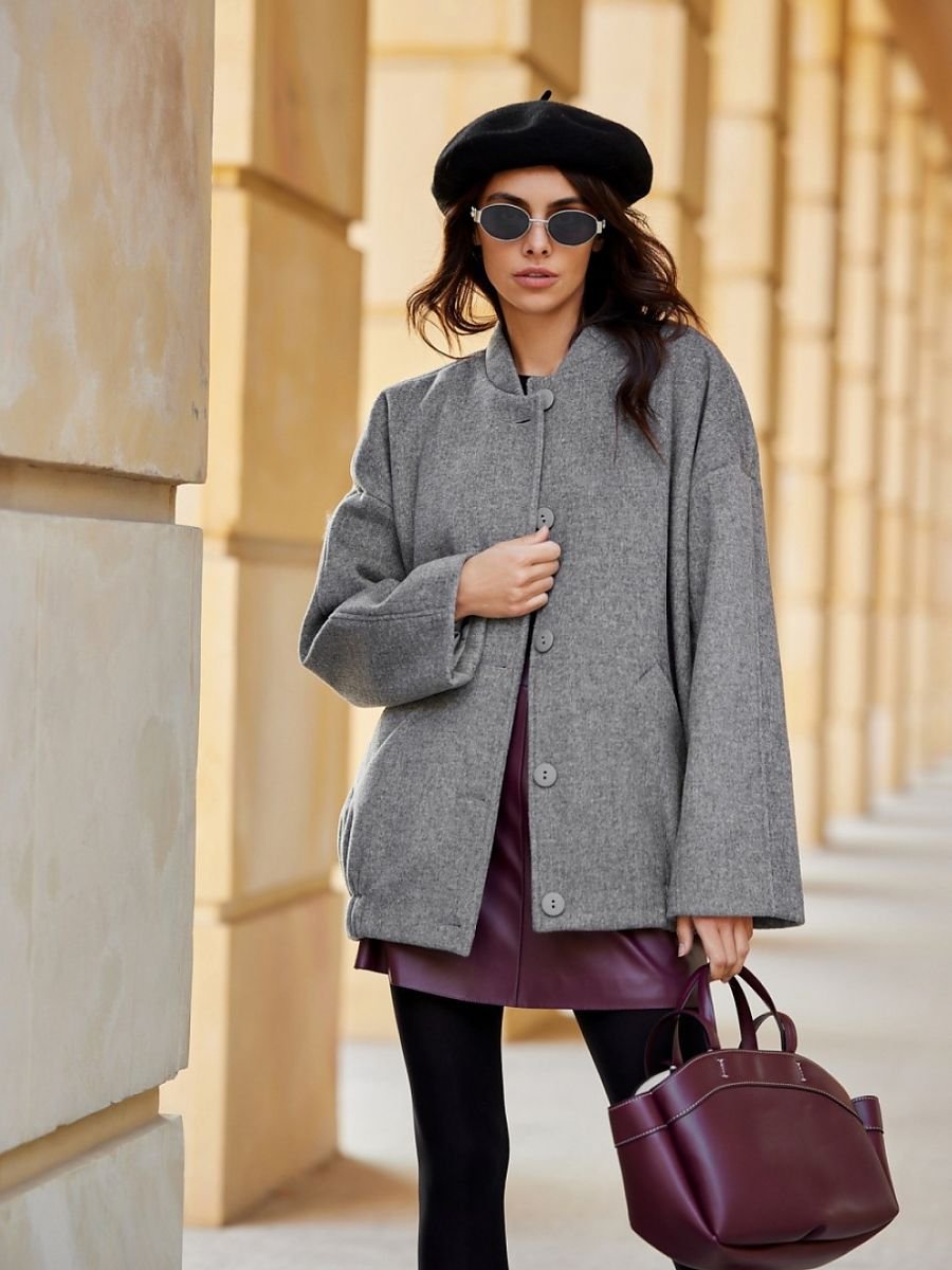 Kurtka została wykonana z miłego w dotyku, gwarantującego ciepło materiału, zapewnia komfort noszenia przez cały dzień. Elegancka konstrukcja z obniżoną linią ramion dodaje luzu i charakteru każdej stylizacji. Stójkowy kołnierz nie tylko podkreśla modny wygląd kurtki, ale także zapewnia dodatkową ochronę przed chłodem. We wnętrzu wszyto starannie wykonaną podszewkę, która sprawia, że kurtka komfortowa i ciepła. Delikatne marszczenie na dole nadaje kurtce niepowtarzalny charakter. Kurtka zapinana na guziki, które dodają oryginalnego stylu. Funkcjonalne boczne kieszenie są dodatkowym atutem kurtki Clea. Unikalne przeszycia znajdujące się z tyłu kurtki oraz na rękawach tworzą efektowny wygląd kurtki, podkreślając jej minimalistyczny design. Luźniejszy fason kurtki Clea sprawia, że kurtka idealnie sprawdzi się w wielu stylizacjach, zarówno na co dzień, jak i na wieczorne wyjścia. Do kurtki dobierz ulubione jeansy i biały t-shirt dla wygodnego looku lub zestaw ją z elegancką sukienką na co dzień. Uzupełnij swoją kolekcję modnych ubrań o kurtkę Clea, która łączy w sobie styl, komfort i funkcjonalność. Produkt jest wyprodukowany i uszyty w Polsce.
