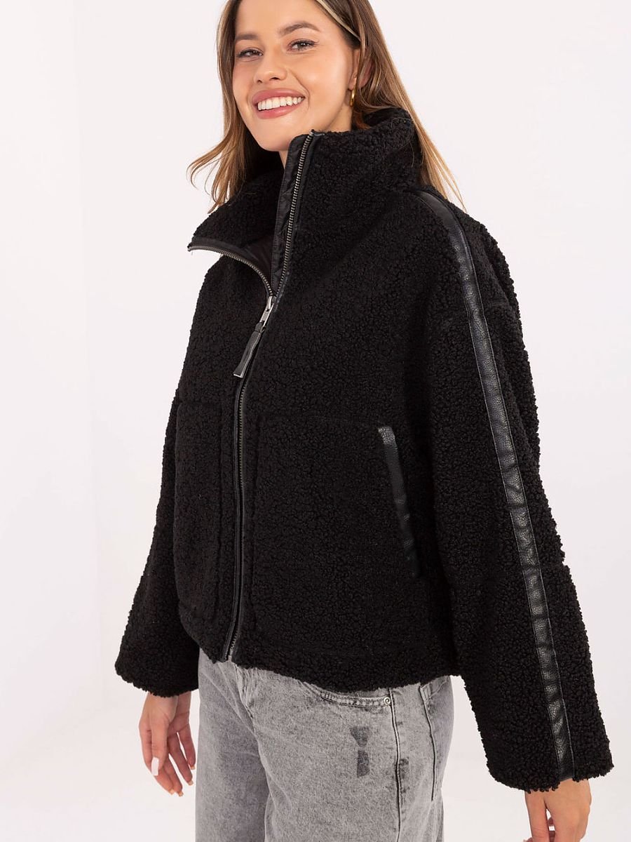Kurtka damska futrzana ze sztucznego futra w casualowym stylu, idealna na codzienne, przejściowe stylizacje w sezonie jesień?zima?wiosna. Krótki fason z długimi rękawami wykonany z miękkiego, sztucznego futra o urozmaiconej fakturze, z podszewką dla większego komfortu. Na rękawach, przy zamku i kieszeniach znajdują się stylowe wstawki z eko skóry, które dodają nowoczesnego charakteru. Model bez ocieplenia, z praktycznymi kieszeniami wsuwanymi i zapinany na zamek, doskonale sprawdzi się w casualowych zestawieniach.