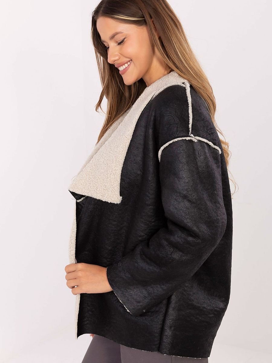 Casualowa kurtka damska z kożuszkiem to idealna propozycja na sezon jesień/zima. Wykonana z wysokiej jakości poliestru, jest lekka i wygodna, a jednocześnie efektowna. Model ma standardową długość oraz długie rękawy, a charakterystyczne wykładane klapy z kożuszkiem nadają mu stylowego wyglądu. Kurtka pozostaje bez zapięcia, co podkreśla jej swobodny, nowoczesny fason. Utrzymana w gładkim wzorze, doskonale sprawdzi się w codziennych stylizacjach jako modna kurtka przejściowa bez ocieplenia i wypełnienia.