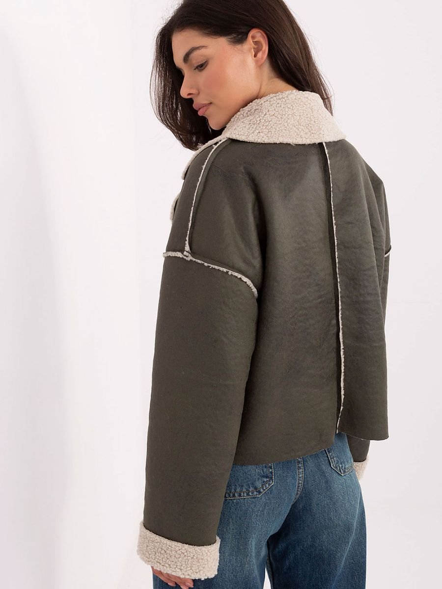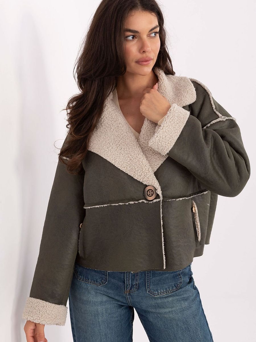 Stylowa kurtka damska z kożuszkiem to idealna propozycja na sezon jesień/zima. Utrzymana w stylu casual, doskonale sprawdzi się w codziennych stylizacjach. Wykonana z wysokiej jakości poliestru, jest lekka i wygodna w noszeniu. Model o krótkiej długości z długim rękawem posiada wykładane klapy oraz imitacje kieszeni na przodzie, co dodaje całości nowoczesnego charakteru. Kurtka jest zapinana na guzik i utrzymana w gładkim wzorze, dzięki czemu łatwo dopasować ją do różnych outfitów. To przejściowy model, bez ocieplenia i wypełnienia, idealny na chłodniejsze, ale nie mroźne dni.