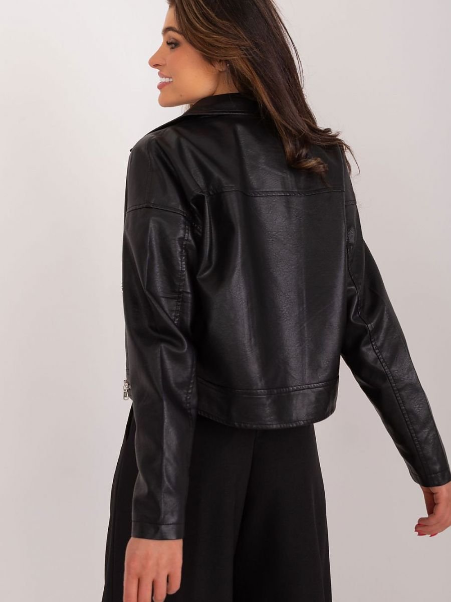Krótka kurtka ramoneska wykonana ze skóry ekologicznej, z długim rękawem, zapinana na zamek. Kurtka posiada podszewkę, wykładany kołnierz, po bokach kieszenie zapinane na zamek. Propozycja na sezon wiosenno-letni, idealna na wiele okazji.