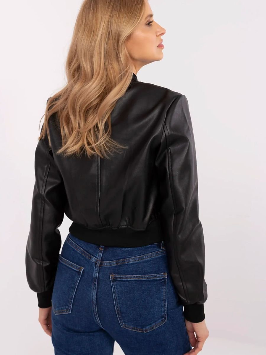 Damska kurtka bomber z ekoskóry to stylowy i funkcjonalny wybór na sezon przejściowy. Wykonana z połączenia poliuretanu, poliestru, wiskozy i bawełny, zapewnia komfort noszenia oraz modny wygląd. Jej klasyczny, gładki wzór i casualowy styl sprawiają, że idealnie pasuje do codziennych stylizacji. Krótki fason podkreśla sylwetkę, a długi rękaw zapewnia wygodę w chłodniejsze dni. Kurtka zapinana jest na zatrzaski, co nadaje jej nowoczesnego charakteru. Dodatkowe kieszenie z patkami na przodzie podkreślają sportowy styl i zwiększają praktyczność. Model wyposażony w podszewkę, dzięki czemu świetnie sprawdzi się w przejściowych porach roku.