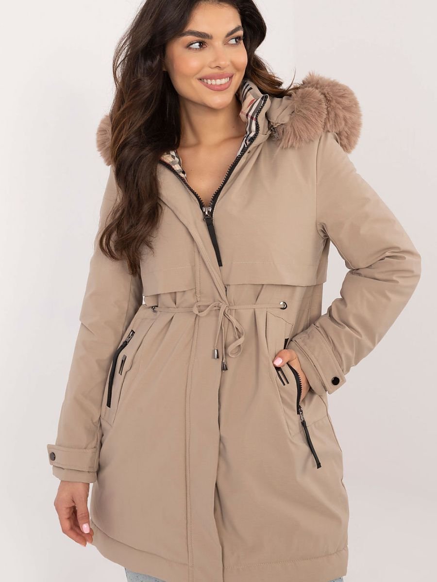 Ta kurtka to idealna propozycja na chłodniejsze dni. Wykonana z wysokiej jakości poliestru, wypełniona syntetycznym puchem, zapewni Ci ciepło i komfort. Pikowana forma nadaje jej nowoczesnego charakteru, a odpinane futerko pozwala dostosować kurtkę do różnych stylizacji i temperatur. Dodatkowy atut to praktyczny pasek w talii, który podkreśla sylwetkę i dodaje elegancji. Praktyczna i funkcjonalna. Standardowa długość przed kolano oraz zapięcie na zamek i zatrzaski zapewniają wygodę i bezpieczeństwo. Kaptur z możliwością odpięcia chroni przed wiatrem i deszczem, a boczne kieszenie zapinane na zamek pozwolą Ci mieć przy sobie niezbędne drobiazgi. Miękka podszewka zwiększa komfort noszenia. Idealna na co dzień. Uniwersalny, gładki wzór sprawia, że kurtka pasuje do wielu stylizacji. Możesz ją nosić zarówno do jeansów, jak i sportowych spodni.