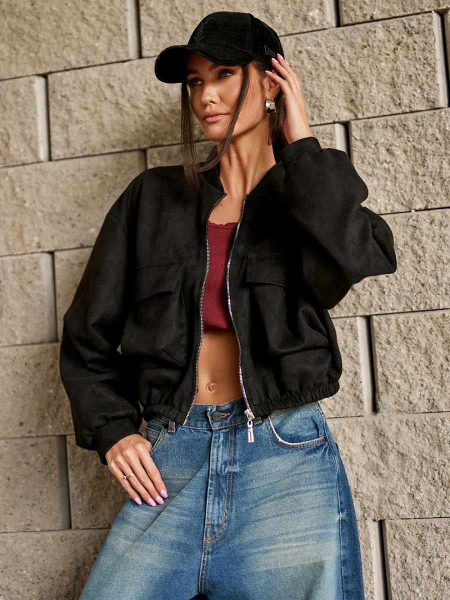 Bomberka Vivara powstała z wysokiej jakości imitacji zamszu, materiał jest miękki w dotyku, wytrzymały i ma eleganckie, matowe wykończenie. Kurtka wyróżnia się swobodnym krojem typu oversize, wygodnym zapięciem na suwak oraz dużymi kieszeniami naszywanymi z przodu, które nadają jej miejski, nowoczesny charakter. Uszyta w Polsce z dbałością o każdy detal, zachwyca precyzją wykonania i trwałością. Doskonale sprawdzi się w codziennych stylizacjach z jeansami i sneakersami, a zestawiona z eleganckimi spodniami stworzy ciekawy, modny kontrast.