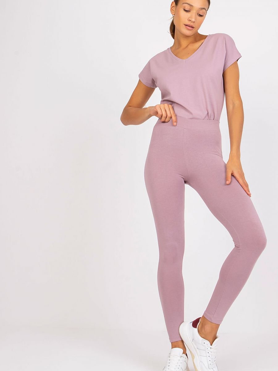 Legginsy z gładkiego materiału z gumką w pasie. Idealnie komponują się z tunikami, przedłużanymi koszulami czy swetrami.