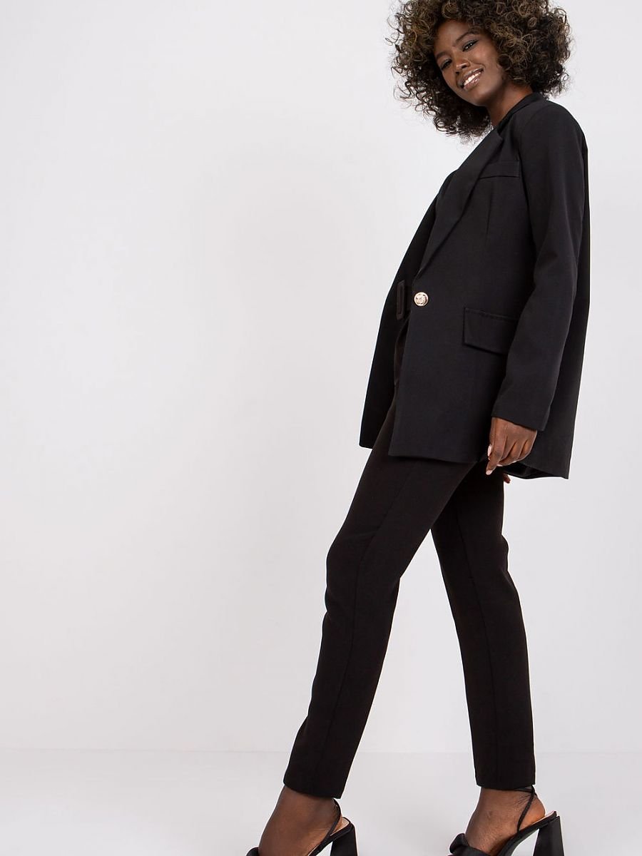 Marynarka damska z długim rękawem, zapinana na guzik. Marynarka na podszewce, z imitacją kieszeni. Na ramionach wszyte poduszki. Idealna propozycja na wiele okazji.