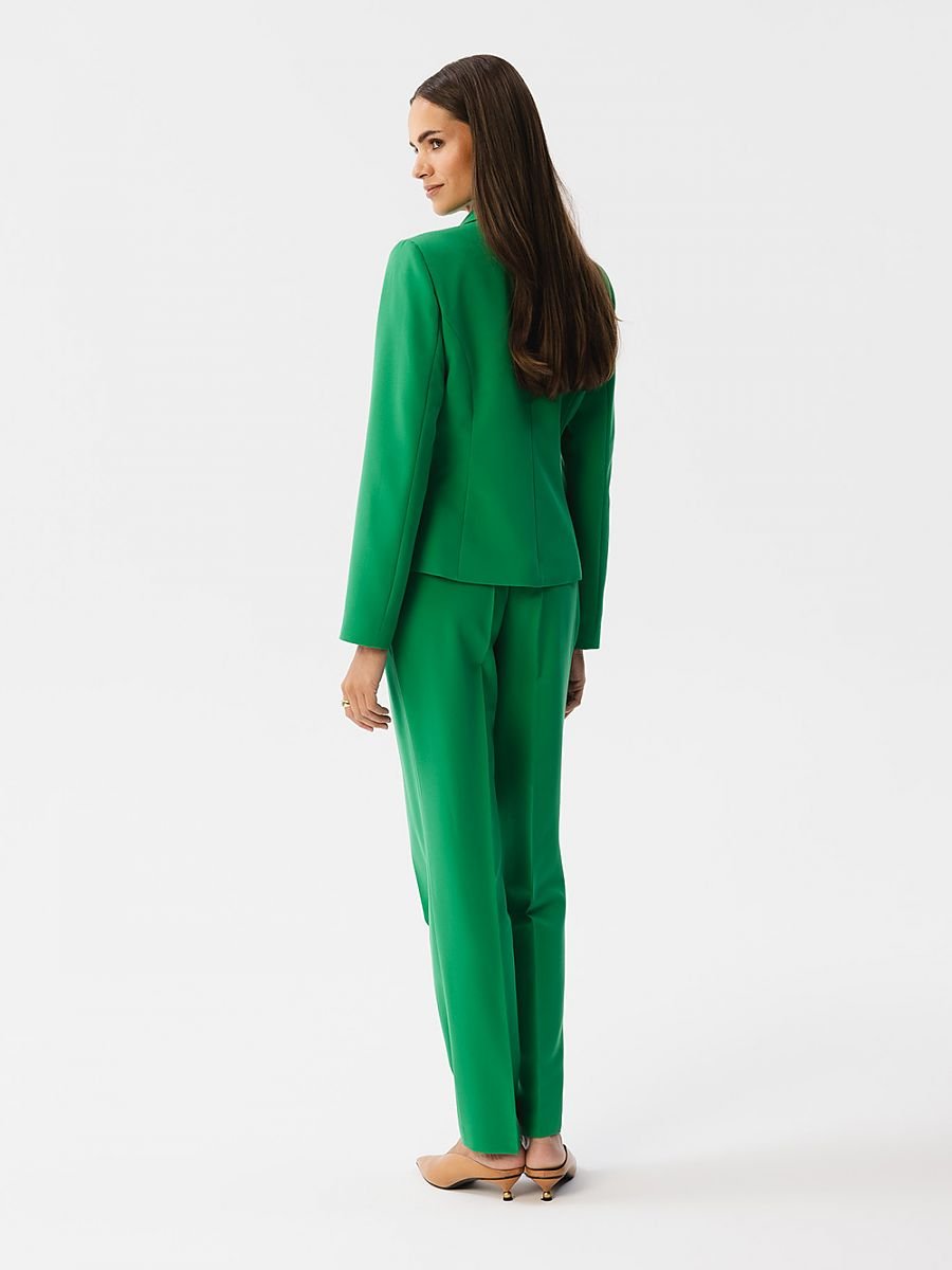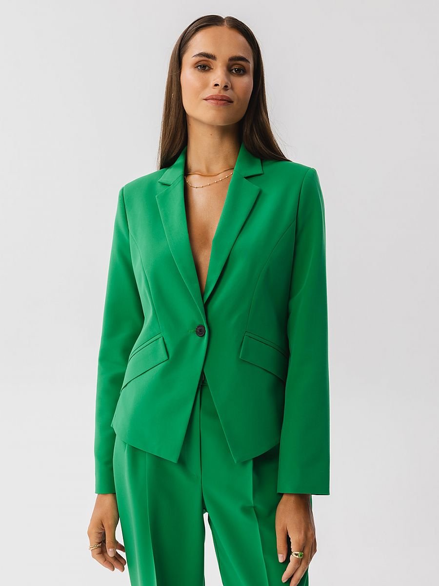Ta marynarka to połączenie elegancji i nowoczesności. Wykonana z wysokiej jakości tkaniny, prezentuje się wyjątkowo. Ma krótki i asymetryczny fason, który nadaje jej oryginalności. Klasyczny kołnierz dodaje elegancji i stylu. Zapięcie na jeden guzik jest praktyczne i dodaje marynarce szyku. Długie rękawy są uniwersalne i pozwalają na różne stylizacje. Z przodu znajduje się imitacja kieszeni z klapami, co dodaje charakteru. Marynarka jest w całości na podszewce, co zapewnia komfort noszenia i odpowiednie wykończenie. To doskonały wybór na różne okazje, od formalnych spotkań po bardziej codzienne sytuacje, dodając Ci pewności siebie i elegancji. Zaprojektowana i uszyta w Polsce.
