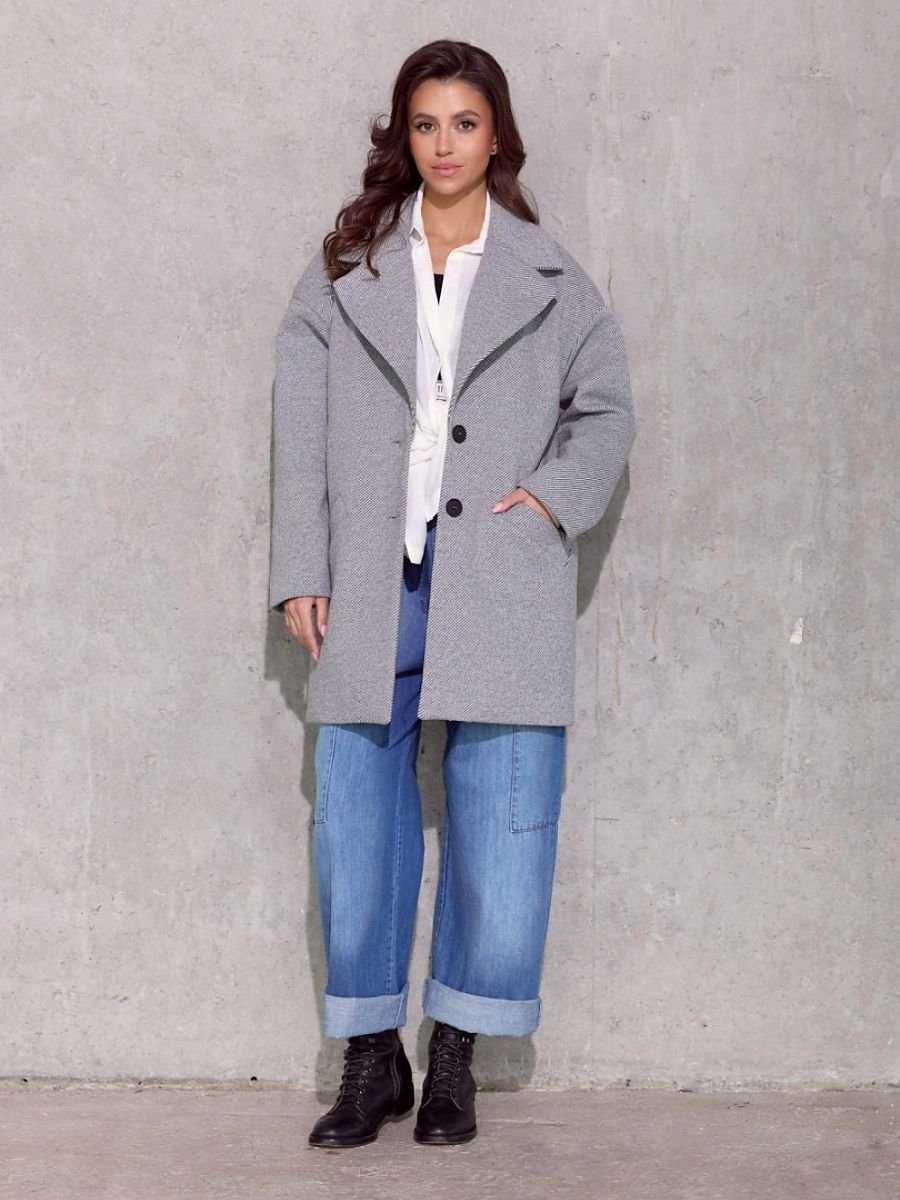 Krótki płaszcz Betty to szeroki fason o obniżonej linii ramion. Jego krój oversize zapewnia swobodę i nadaje nowoczesnego wyglądu. Fason zapinany na dwa guziki. Wyrazista faktura materiału i duże ozdobne klapy dodają szyku i elegancji. Płaszcz Betty posiada dwie klasyczne kieszenie. Model ocieplany jest pikowaną podszewką. Płaszcz Betty z pewnością nada ponadczasowy charakter każdej Twojej stylizacji. Unikatowy krój płaszcza pozwoli Ci wyróżnić się spośród tłumu jednocześnie zapewniając Ci niesamowitą wygodę oraz ciepło w chłodniejsze dni. Płaszcz Betty idealnie dopełni eleganckie oraz bardziej codziennie stylizacje.