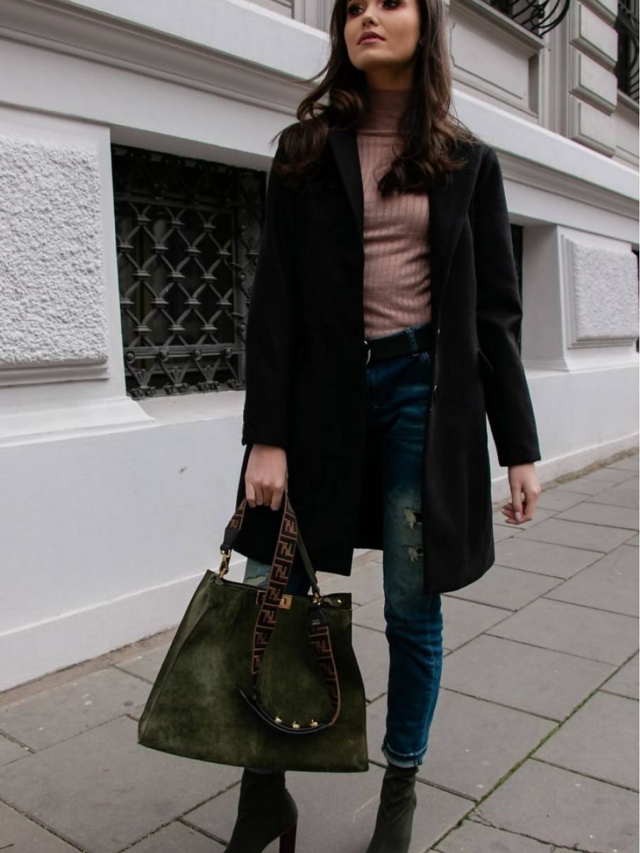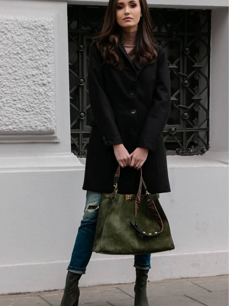 Jednorzędowy płaszcz o dopasowanym fasonie. Zapinany na trzy guziki z klasycznym kołnierzem. Posiada podszewkę, praktyczne kieszenie i zdobienia w postaci guzików na rękawach. Polska produkcja.