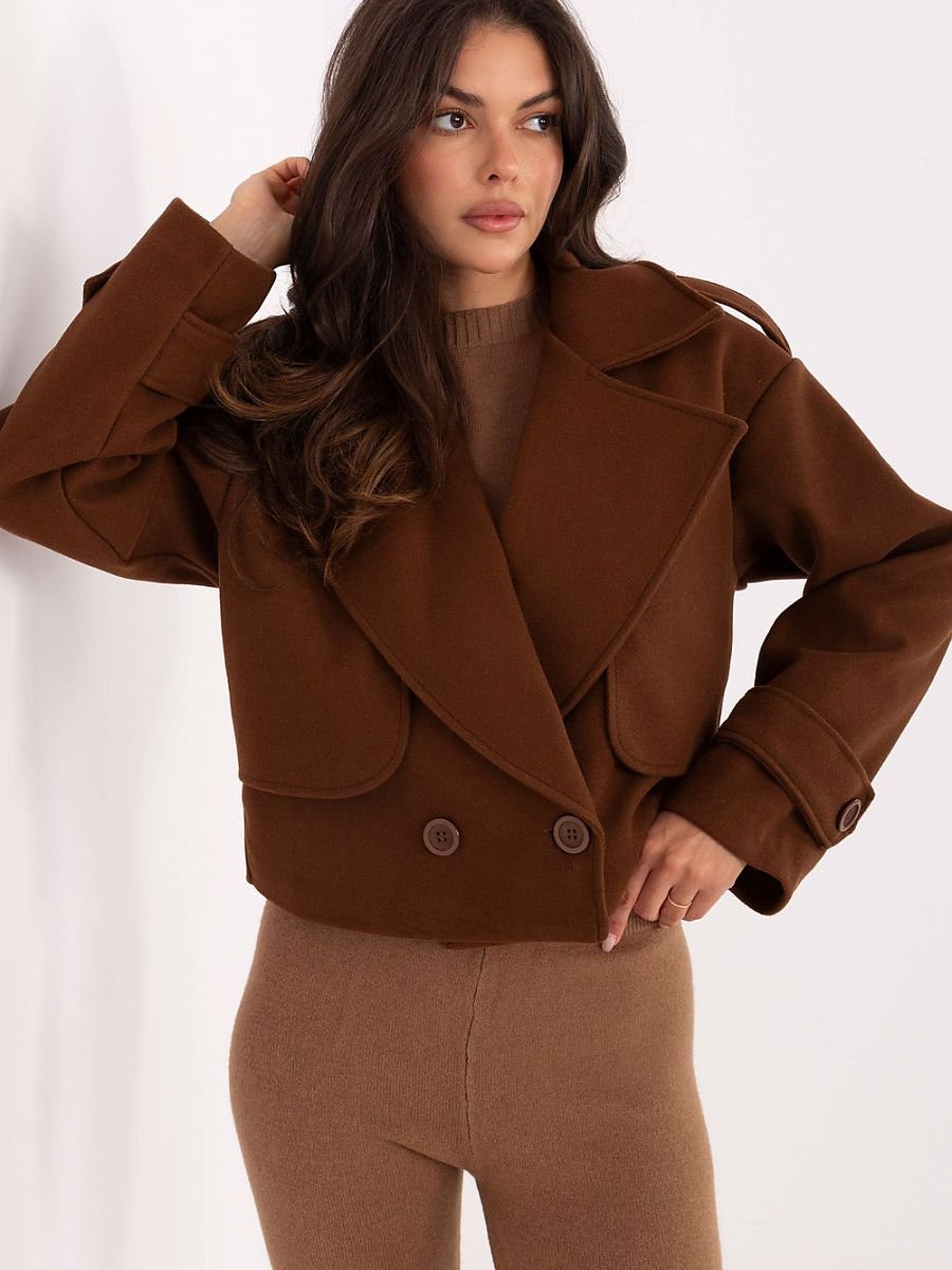 Krótki damski trencz to klasyczny płaszcz przejściowy w casualowym stylu, który świetnie sprawdzi się zarówno na co dzień, jak i do pracy. Wykonany z poliestru, prezentuje się elegancko i jest praktyczny w użytkowaniu, a dzięki gładkiej fakturze pozostaje ponadczasowy i uniwersalny. Model o krótkiej długości wyposażony jest w długi rękaw, szerokie klapy i pagony na ramionach, które nadają mu charakterystycznego, trenczowego wyglądu. Dwurzędowe zapięcie na guziki podkreśla klasyczny fason, a podszewka zwiększa komfort noszenia i staranność wykończenia. To lekki płaszcz bez ocieplenia, idealny na sezon jesień?zima?wiosna. Doskonale uzupełni codzienne stylizacje, dodając im elegancji i miejskiego szyku.