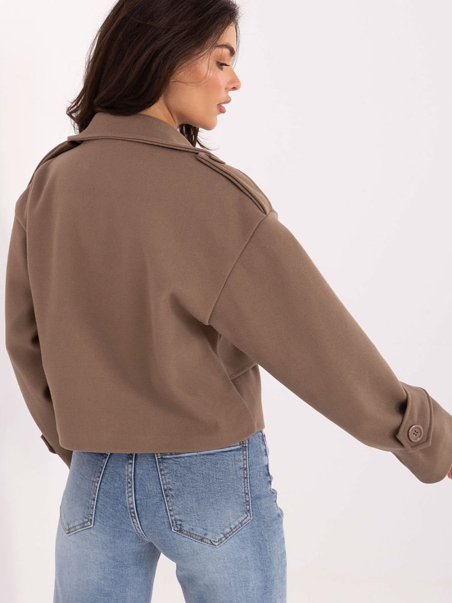 Krótki damski trencz to klasyczny płaszcz przejściowy w casualowym stylu, który świetnie sprawdzi się zarówno na co dzień, jak i do pracy. Wykonany z poliestru, prezentuje się elegancko i jest praktyczny w użytkowaniu, a dzięki gładkiej fakturze pozostaje ponadczasowy i uniwersalny. Model o krótkiej długości wyposażony jest w długi rękaw, szerokie klapy i pagony na ramionach, które nadają mu charakterystycznego, trenczowego wyglądu. Dwurzędowe zapięcie na guziki podkreśla klasyczny fason, a podszewka zwiększa komfort noszenia i staranność wykończenia. To lekki płaszcz bez ocieplenia, idealny na sezon jesień?zima?wiosna. Doskonale uzupełni codzienne stylizacje, dodając im elegancji i miejskiego szyku.