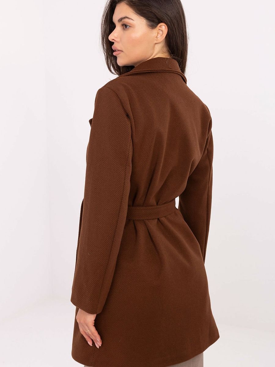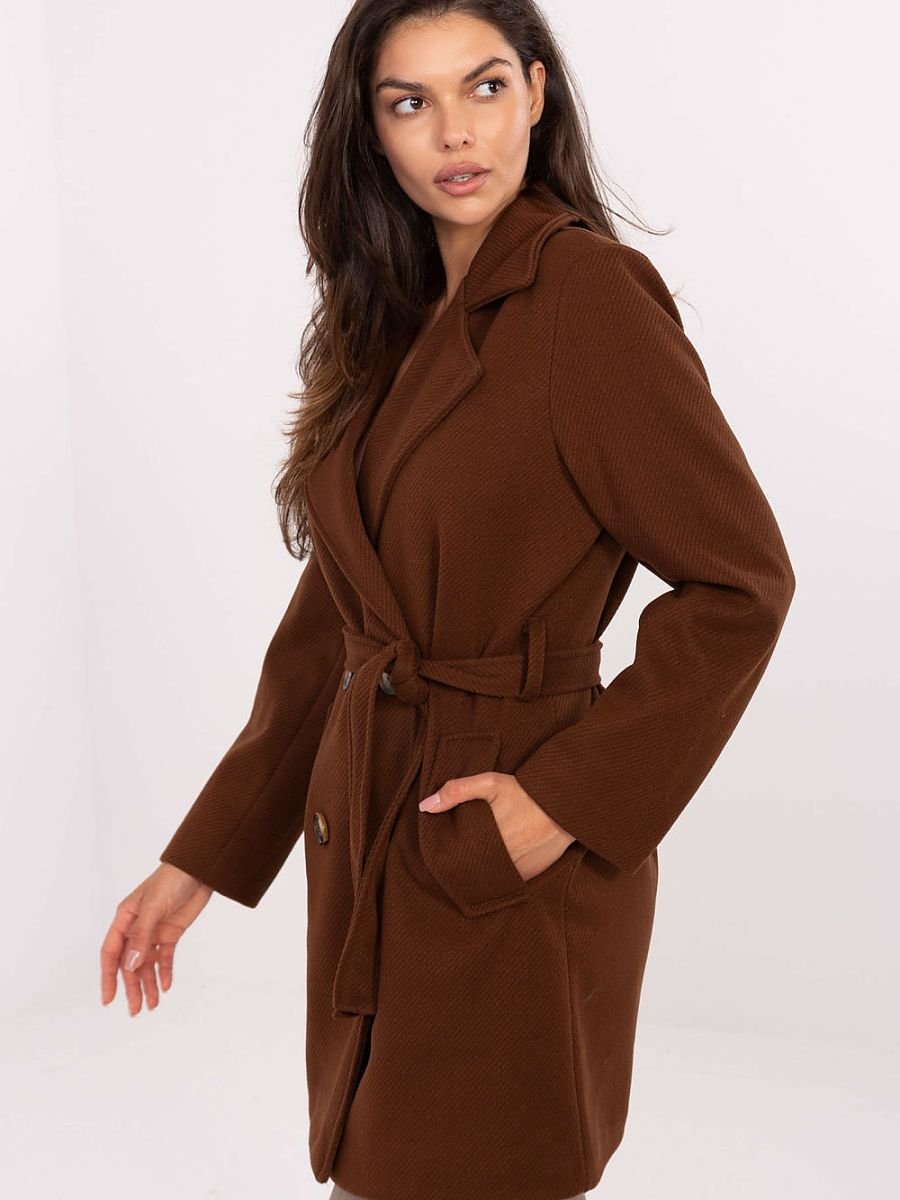 Elegancki płaszcz damski o długości do połowy uda, idealny na sezon przejściowy ? jesień, zimę i wiosnę. Uszyty z poliestru, z drobnym wzorem w paski, prezentuje ponadczasowy i stylowy charakter. Posiada szerokie klapy oraz dwurzędowe zapięcie na guziki, a dodatkowy pasek w talii pozwala podkreślić sylwetkę. Wyposażony w praktyczne kieszenie wsuwane i podszewkę, bez ocieplenia, sprawdzi się zarówno w codziennych stylizacjach, jak i jako elegancki wybór do pracy.