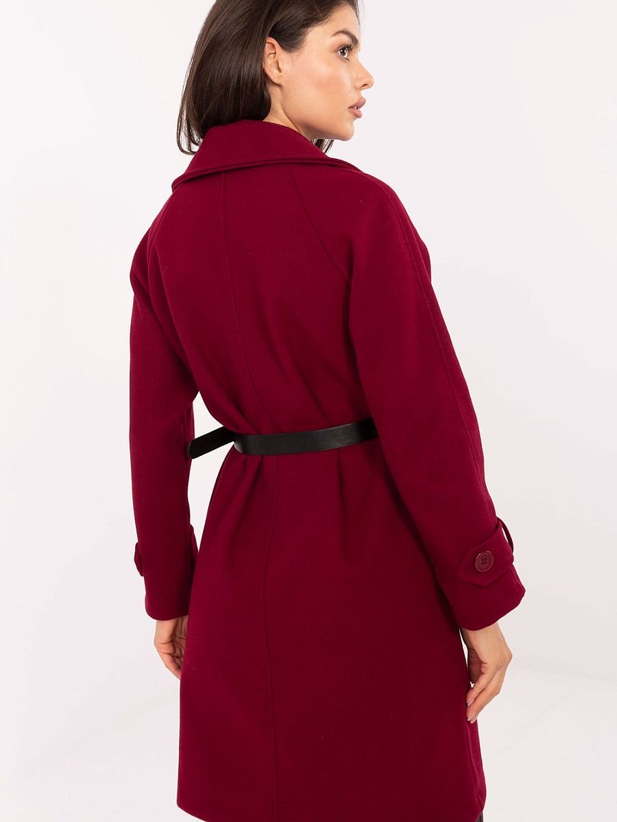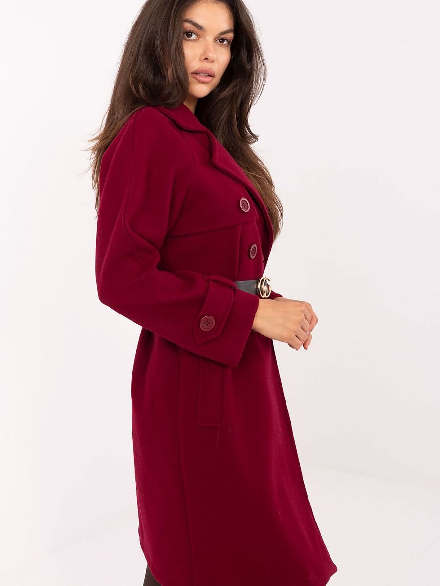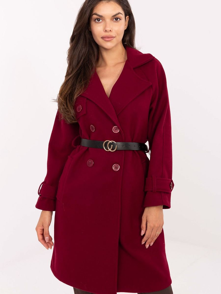 Elegancki płaszcz damski o długości przed kolano, doskonały na sezon przejściowy ? jesień, zimę i wiosnę. Wykonany z gładkiego poliestru, wyróżnia się klasycznym, ponadczasowym stylem. Posiada dwurzędowe zapięcie na guziki oraz pasek z możliwością zapięcia, który podkreśla talię i nadaje sylwetce eleganckiego kształtu. Wyposażony w praktyczne kieszenie wsuwane i długie rękawy, sprawdzi się zarówno na co dzień, do pracy, jak i podczas okazji wizytowych.