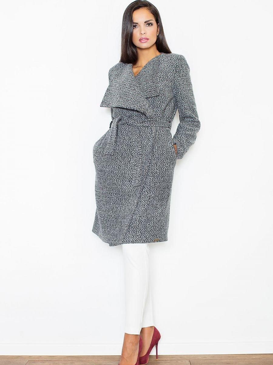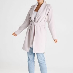 Elegancki jesienny płaszcz typu oversize. Z obszernymi klapami i kieszeniami w szwach. Wiązany w pasie. Wykonany a tkaniny flauszowej. Miły i delikatny w dotyku, na podszewce. Doskonale współgra z figurą.