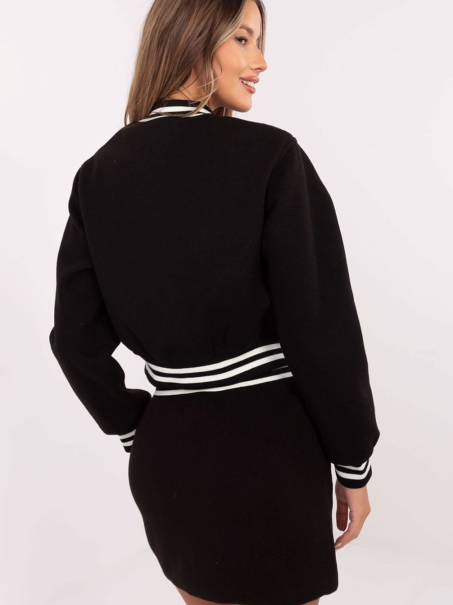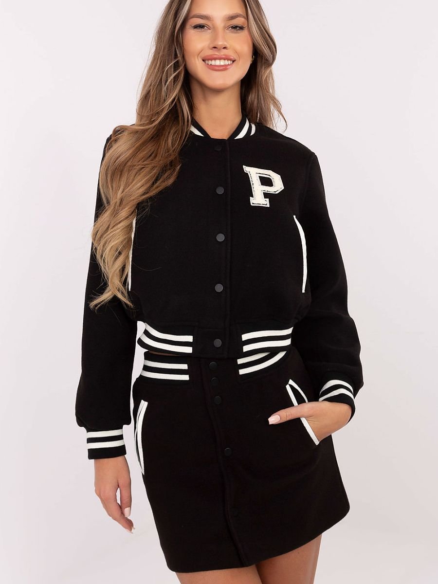 Nowoczesny i stylowy komplet damski w stylu casual, składający się z bluzy oraz spódnicy, to doskonały wybór na codzienne okazje. Wykonany z trwałego poliestru i wyposażony w podszewkę, zapewnia wygodę oraz estetyczny wygląd. Bluza o krótkiej długości ma długi rękaw, stójkę oraz kontrastowe paski na ściągaczach, które dodają jej sportowego charakteru. Boczne wsuwane kieszenie i naszywki na bluzie podkreślają nowoczesny styl. Bluza zapinana jest na guziki, co zapewnia funkcjonalność i modny wygląd. Spódnica o krótkiej długości, również z bocznymi wsuwanymi kieszeniami, harmonijnie dopełnia zestaw. Zapięcie na guziki nadaje jej eleganckiego akcentu, który świetnie komponuje się z casualowym stylem kompletu. To doskonały wybór dla kobiet ceniących komfort, uniwersalność i niebanalny design.
