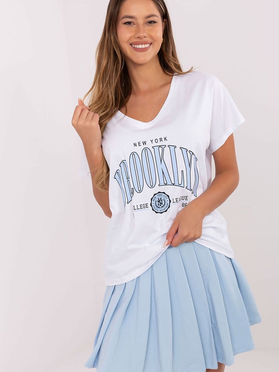Casualowy komplet damski składający się z t-shirtu i spódnicy plisowanej, idealny na codzienne stylizacje. T-shirt wykonany z miękkiej bawełny z dodatkiem elastanu posiada krótki rękaw, dekolt w serek oraz modny nadruk na przodzie, który dodaje charakteru całej stylizacji. Spódnica mini z wysokim stanem wykonana jest z tego samego komfortowego materiału i posiada wszyte szorty, zapewniające swobodę ruchów. Plisowana konstrukcja nadaje lekkości i kobiecego wdzięku, tworząc zestaw, który łączy wygodę z modnym casualowym stylem.