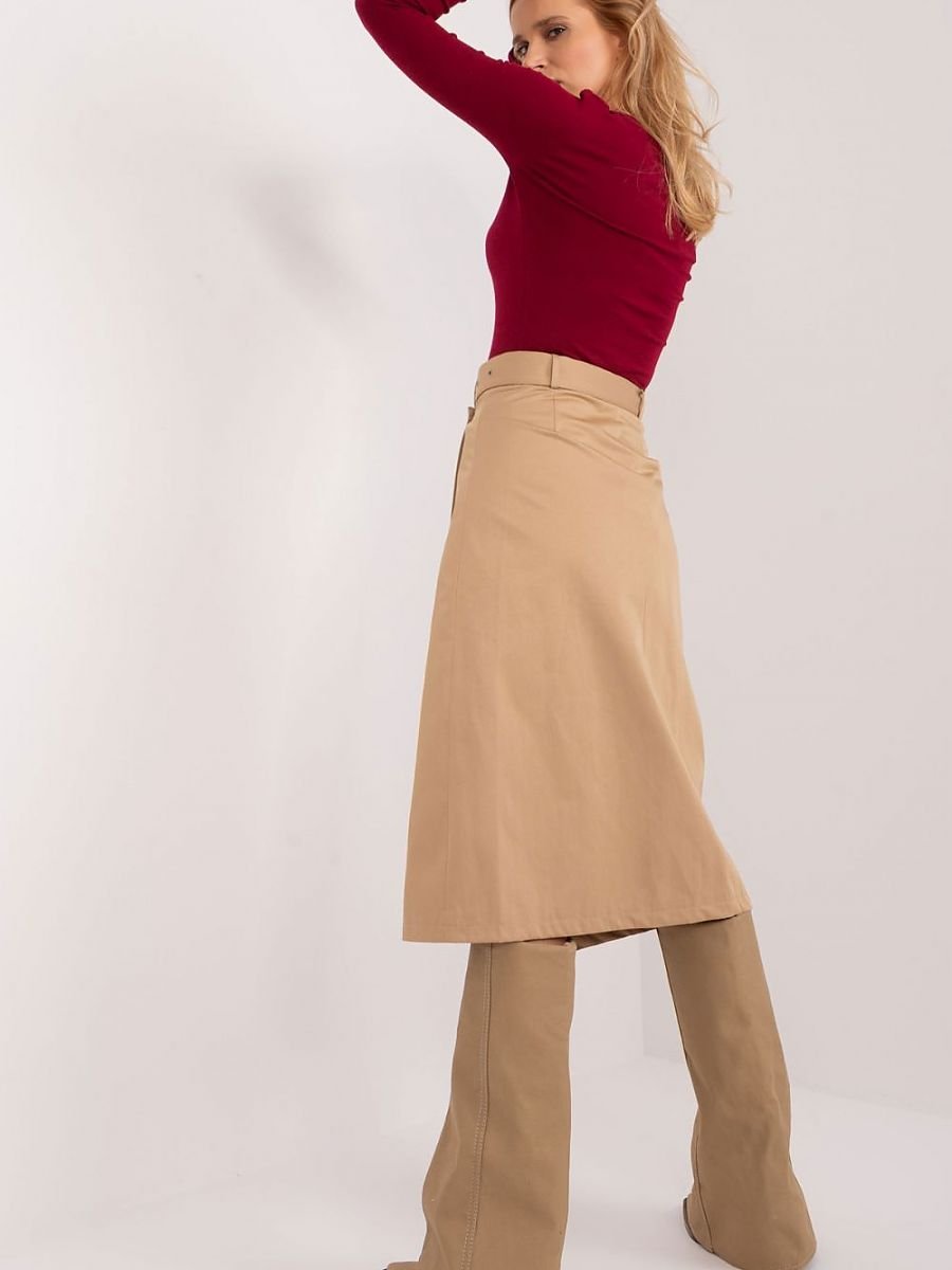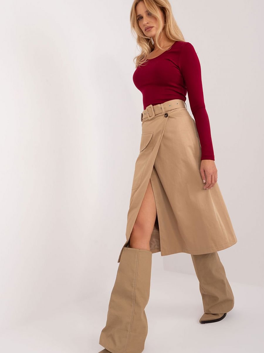 Spódnica o przodzie kopertowym to wyjątkowy element garderoby, który łączy w sobie funkcjonalność i styl. Doskonale sprawdzi się na różne okazje, od codziennych spotkań po dni w pracy, oferując swobodę ruchów i wygodę noszenia. Wykonana głównie z wysokiej jakości bawełny, spódnica gładka w dotyku zapewnia komfort przez cały dzień. Materiał ten nadaje się doskonale do codziennego użytku, podkreślając przy tym naturalny charakter spódnicy. Spódnica posiada długość midi, co dodaje jej elegancji i sprawia, że jest odpowiednia na różne okazje. Przód kopertowy nadaje jej oryginalności i subtelnej nonszalancji, jednocześnie pozostając stylowym elementem casualowej garderoby. Zapięcie na guzik i pasek zapinany podkreślają talię, dodając spódnicy kobiecego charakteru. Dodatkowo, obecność podszewki zapewnia komfort noszenia oraz lepszą strukturę spódnicy. Na przodzie spódnicy umieszczona jest kieszeń naszyta z patką, co nadaje jej praktyczności i dodatkowego uroku. Ta subtelna ozdoba sprawia, że spódnica staje się nie tylko funkcjonalnym, ale również modnym elementem codziennego stroju. Ta spódnica to doskonałe połączenie elegancji i luzu, co sprawia, że będzie idealnym wyborem na różne okoliczności, od spotkań ze znajomymi po dni w pracy.