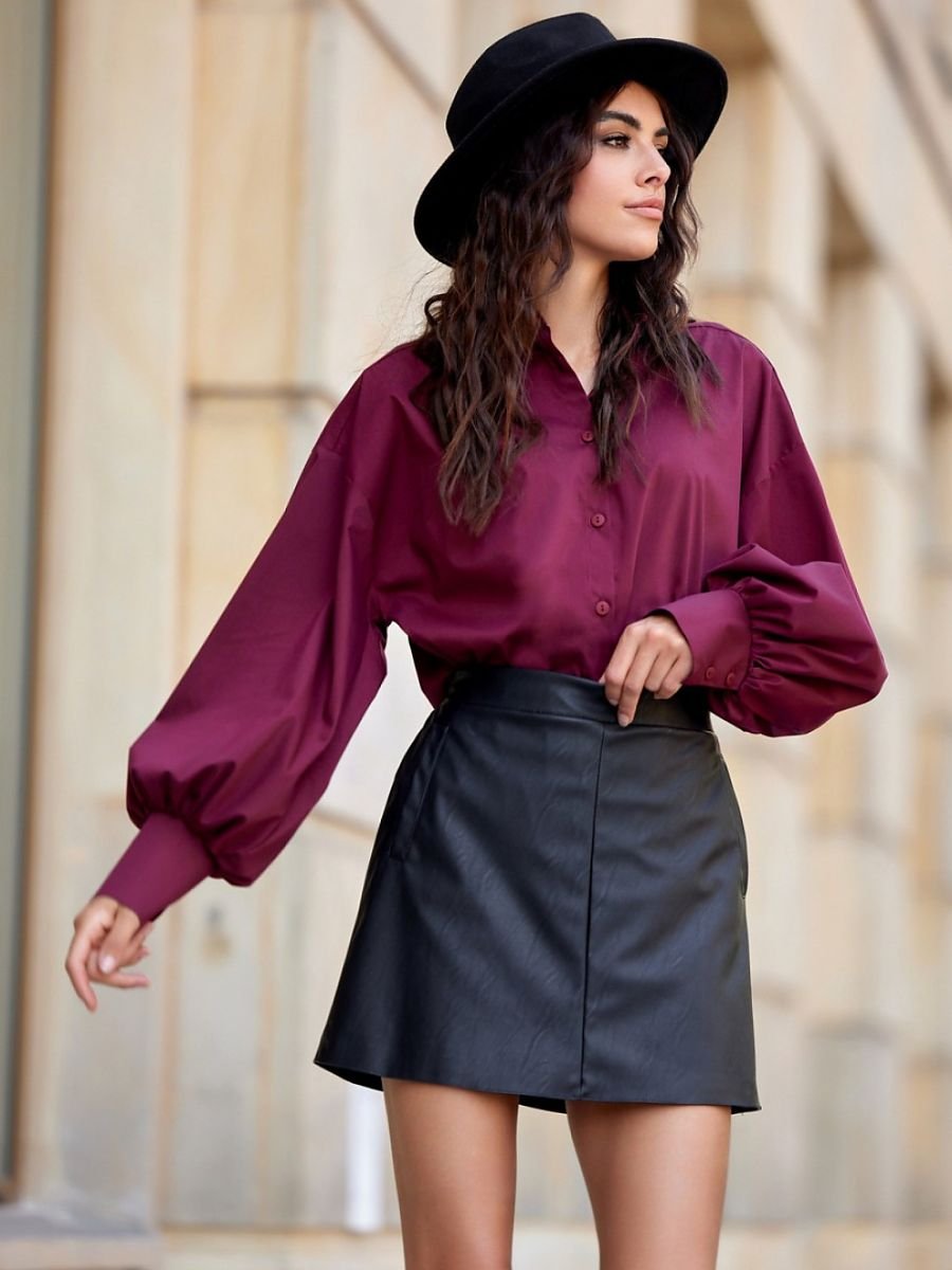 Spódnica Jackie została wykonana z materiału imitującego skórę, który doskonale sprawdza się w sezonie jesienno-zimowym. Spódnica została wykonana w kształcie trapezu, który dobrze prezentuje się na każdej sylwetce. Wzmocniony pas na wysokości talii pięknie ją podkreśla, a długość mini eksponuje nogi. Z tyłu została wszyta gumka, która zapewnia idealne dopasowanie i gwarantuje wygodę. Dodatkowym atutem spódnicy są kieszenie umieszczone po bokach. Spódnica posiada wszytą podszewkę. Spódnica Jackie będzie świetnie prezentować się w stylizacjach jesienno-zimowych z obszernym swetrem oversize i masywnymi, sznurowanymi traperami, a także w bardziej eleganckiej odsłonie, w połączeniu z koszulą i botkami na słupku. Duża torba oraz ciepły szal będą stylowym uzupełnieniem całego looku. Skórzana spódnica to doskonała opcja na różne okazje, od codziennych spotkań po eleganckie wyjścia. Produkt jest wyprodukowany i uszyty w Polsce.