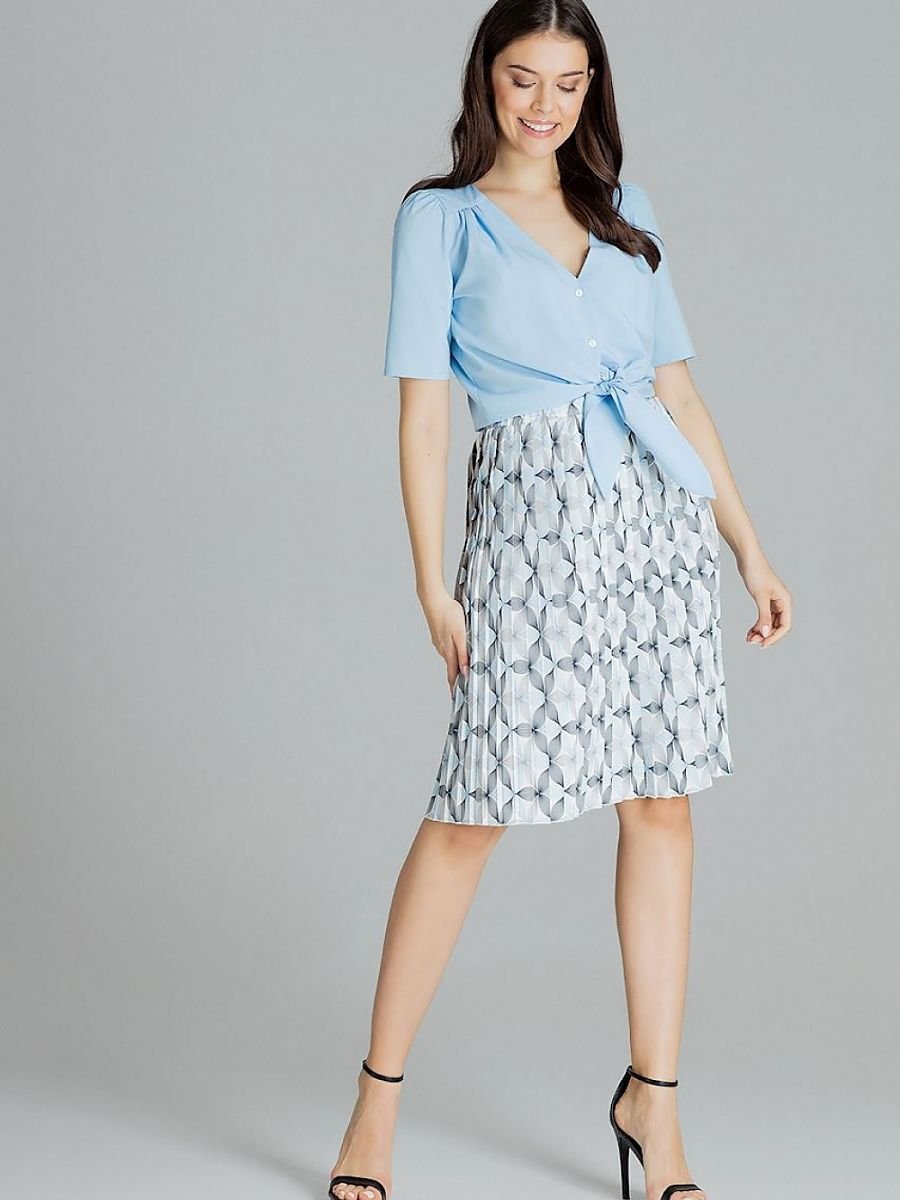 Plisowana spódnica midi we wzory, w pasie wszyta guma.