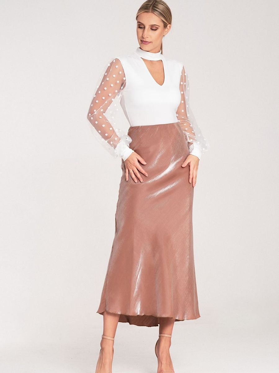 Spódnica midi z satynowej tkaniny. W pasie guma.