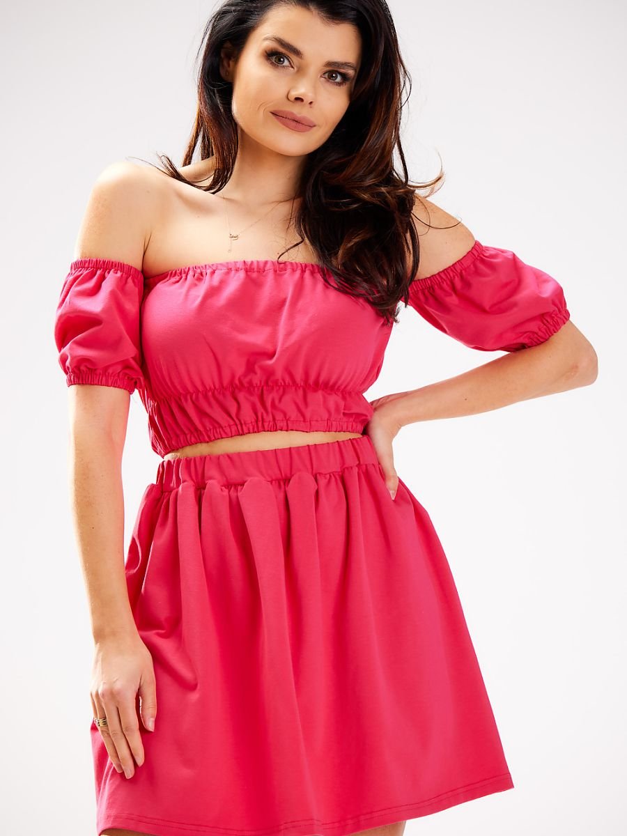 Krótka spódnica rozkloszowana uszyta z gładkiego materiału. W talii elastyczna guma, która zapewnia wygodne dopasowanie. Klasyczny fason z lekko rozszerzanym dołem podkreśla sylwetkę i dodaje lekkości każdej stylizacji. Idealna na co dzień i na specjalne okazje.