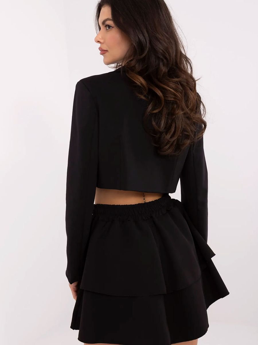 Lekka i dziewczęca rozkloszowana spódnica mini to idealny wybór na co dzień. Wykonana z przyjemnej w dotyku mieszanki poliestru, elastanu i wiskozy, zapewnia komfort noszenia oraz swobodę ruchów. W pasie wszyta elastyczna guma, która dopasowuje się do sylwetki i podkreśla talię. Dodatkowym akcentem jest ozdobna naszywka umieszczona na przodzie gumy. Model składa się z dwóch falban, które dodają całości lekkości i subtelnego uroku. Gładki wzór oraz uniwersalny krój sprawiają, że spódnica świetnie komponuje się zarówno z basicowymi T-shirtami, jak i bardziej eleganckimi bluzkami. Doskonała propozycja do casualowych stylizacji na co dzień.