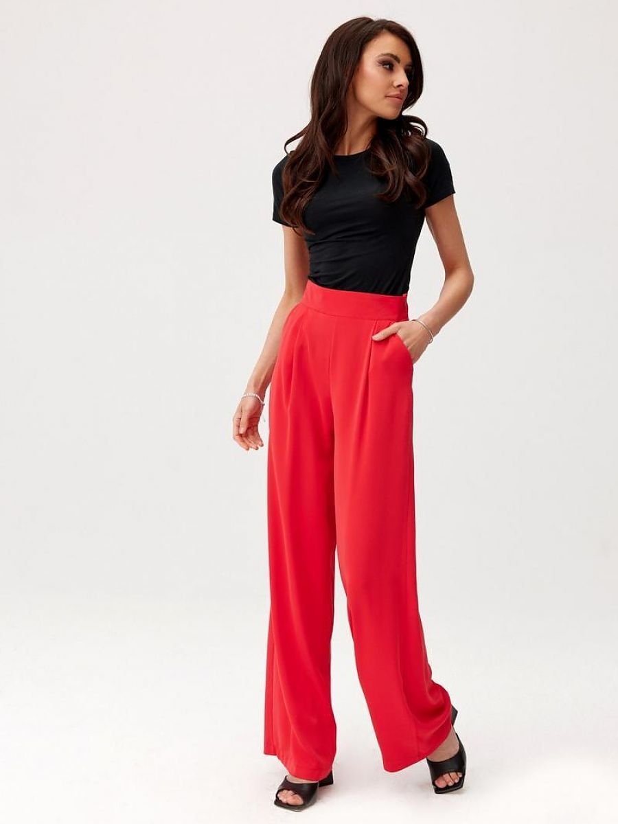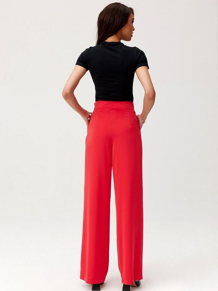 Spodnie Alaya to idealnie skrojony model, który pięknie podkreśla kobiece wdzięki. Spodnie są niezwykle komfortowe w noszeniu i świetnie wglądają na każdym typie sylwetki. Mają luźne i szerokie nogawki typu wide leg, które są modne i bardzo praktyczne. Wbudowany szeroki pas w talii oraz stan high waist doskonale podkreślają talię, optycznie wyszczuplając sylwetkę. Spodnie posiadają kieszenie po bokach oraz dyskretny, wbudowany zamek błyskawiczny, który ułatwia zakładanie oraz zapewnia idealne dopasowanie. Spodnie Alaya doskonale sprawdzą się w różnych okolicznościach i w rozmaitych stylizacjach. Zestawione z klasyczną koszulą i eleganckimi butami stworzą idealny look na wyjścia do biura, spotkania biznesowe, albo formalne uroczystości rodzinne. Dobierając do nich luźny top i krótszy sweter zbudujesz stylizację idealną na co dzień.