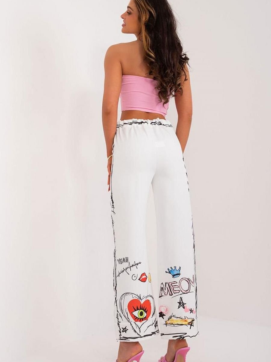 Wyobraź sobie te spodnie, są one ożywione, pełne energii i gotowe na każdą codzienną przygodę. Wykonane z wygodnego materiału poliestrowego, są one nie tylko przyjemne dla skóry, ale także trwałe i łatwe w pielęgnacji. Ich wysoki pas z elastyczną gumą gwarantuje doskonałe dopasowanie i wygodę przez cały dzień. Szerokie nogawki dodają swobody ruchom, nadając całemu zestawowi luzu i nonszalancji. Kieszenie boczne, dyskretne i praktyczne, umożliwiają bezproblemowe przechowywanie najpotrzebniejszych drobiazgów, takich jak klucze czy telefon. Ale to nie wszystko, co sprawia, że te spodnie są wyjątkowe. Ich kolorowy nadruk dodaje im charakteru i stylu, nadając wyjątkowy akcent każdemu outfitowi. Niezależnie od tego, czy idziesz na spacer po mieście, na spotkanie ze znajomymi, czy po prostu na zakupy, te spodnie są idealnym wyborem dla osób, które cenią sobie swobodę, wygodę i styl.
