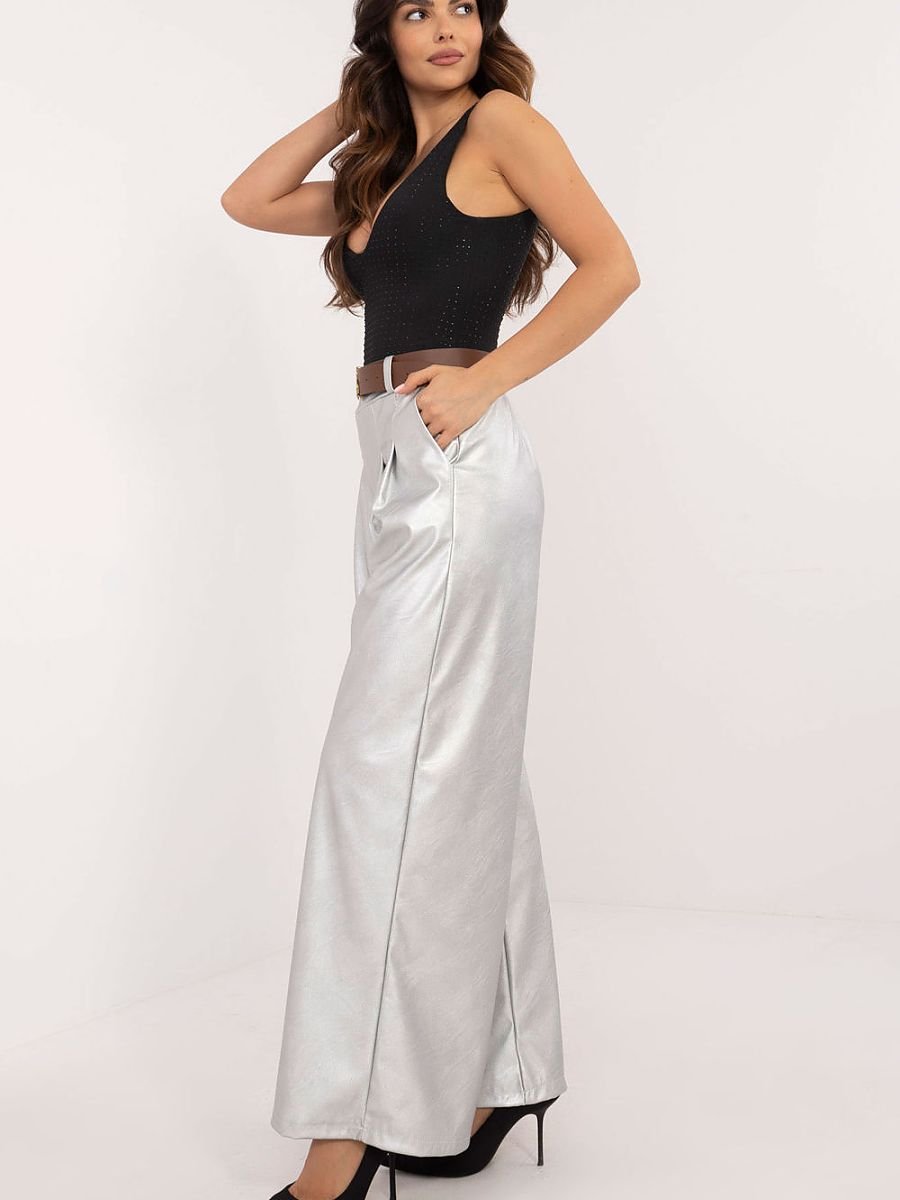 Spodnie ze skóry ekologicznej to doskonały wybór dla kobiet, które pragną połączyć elegancję z codziennym komfortem. Idealne do pracy, jak i na co dzień, te spodnie wyróżniają się minimalistycznym, gładkim wzorem, który łatwo dopasować do różnych stylizacji. Wykonane z wysokiej jakości poliestru i wiskozy, zapewniają nie tylko stylowy wygląd, ale także komfort noszenia. Wysoki stan z tyłu wszytą gumą gwarantuje doskonałe dopasowanie i wygodę, a szerokie nogawki nadają spodniom nowoczesnego, modnego charakteru. Brak zapięcia sprawia, że są niezwykle łatwe do zakładania, a praktyczne, wsuwane kieszenie boczne dodają funkcjonalności. Dodatkowo, zapinany pasek umożliwia jeszcze lepsze dopasowanie w talii. Te ocieplane spodnie będą idealnym wyborem na chłodniejsze dni, łącząc elegancję z codzienną wygodą i nowoczesnym stylem.