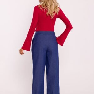 Bordowe dopasowane spodnie z eko-skóry. W pasie, z tyłu wszyta szeroka guma. Z przodu duże naszywane kieszenie.