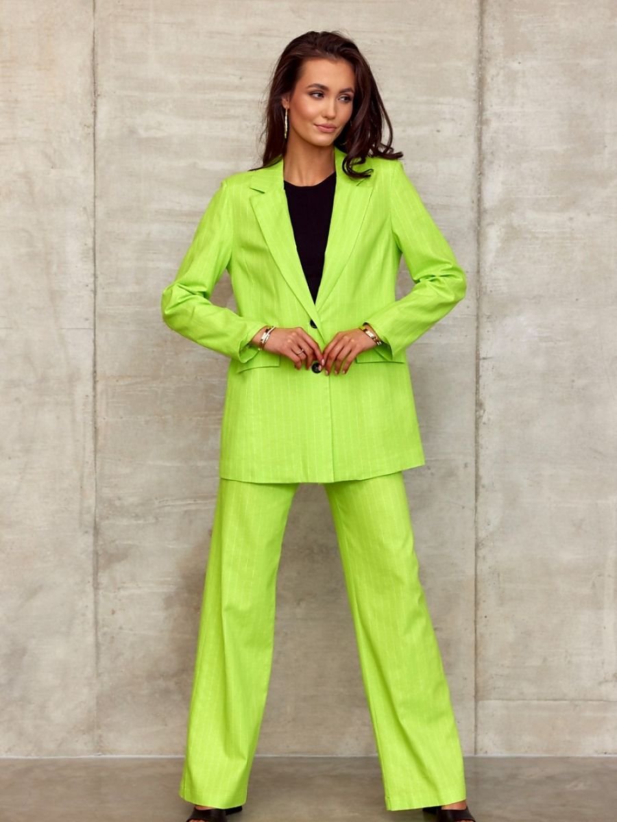Piękne spodnie o szerokim kroju i wysokim stanie to idealny wybór do codziennych i okazjonalnych stylizacji. Po bokach kieszenie wsuwane, zapinane na kryty zamek. Na przodzie zaszewki. Idealnie się sprawdzą z marynarką w tym samym kolorze.