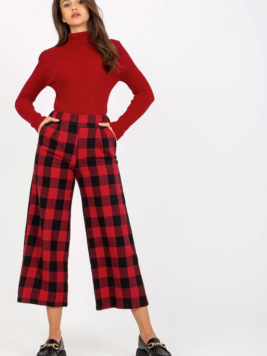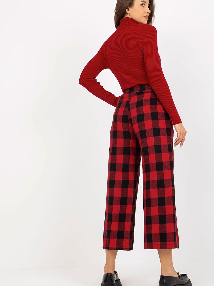 Spodnie damskie z materiału w kratę, zapinane na kryty zamek. Po bokach kieszenie wsuwane. Idealna propozycja na wiele okazji.
