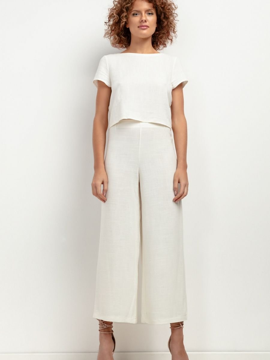 Szukasz idealnych spodni do letnich stylizacji? Oto świetna propozycja, eleganckie spodnie z lnem T406. Długość 7/8 sprawia, że będą one doskonałym wyborem na ciepłe dni. Wykonane z przewiewnych tkanin zapewniają komfort noszenia nawet podczas upalnej pogody. Te spodnie to połączenie formalnego designu ze swobodnym krojem. Ich szerokie nogawki dodają lekkości każdej stylizacji. Dodatkowo zaszewki z przodu i z tyłu oraz wszyty z boku zamek kryty pozwalają prezentować się im bardzo elegancko. Idealne zarówno do biura, jak i na spotkania w plenerze – gwarantują pełen komfort i swobodę ruchów. Zestawienie 70% wiskozy i 30% lnu sprawia, że te spodnie są nie tylko stylowe, ale także przyjazne dla skóry. Naturalne włókna pozwalają skórze oddychać, co jest szczególnie istotne podczas letnich dni. Dodatkowo materiały te są trwałe i łatwe w pielęgnacji. Spodnie z lnem T406 to propozycja dla osób ceniących sobie wysoką jakość wykonania oraz modny design. Dzięki nim stworzysz unikatowe zestawy ubrań, które podkreślą Twój indywidualny styl. Postaw na elegancję i wygodę, wybierz te przewiewne spodnie na lato!