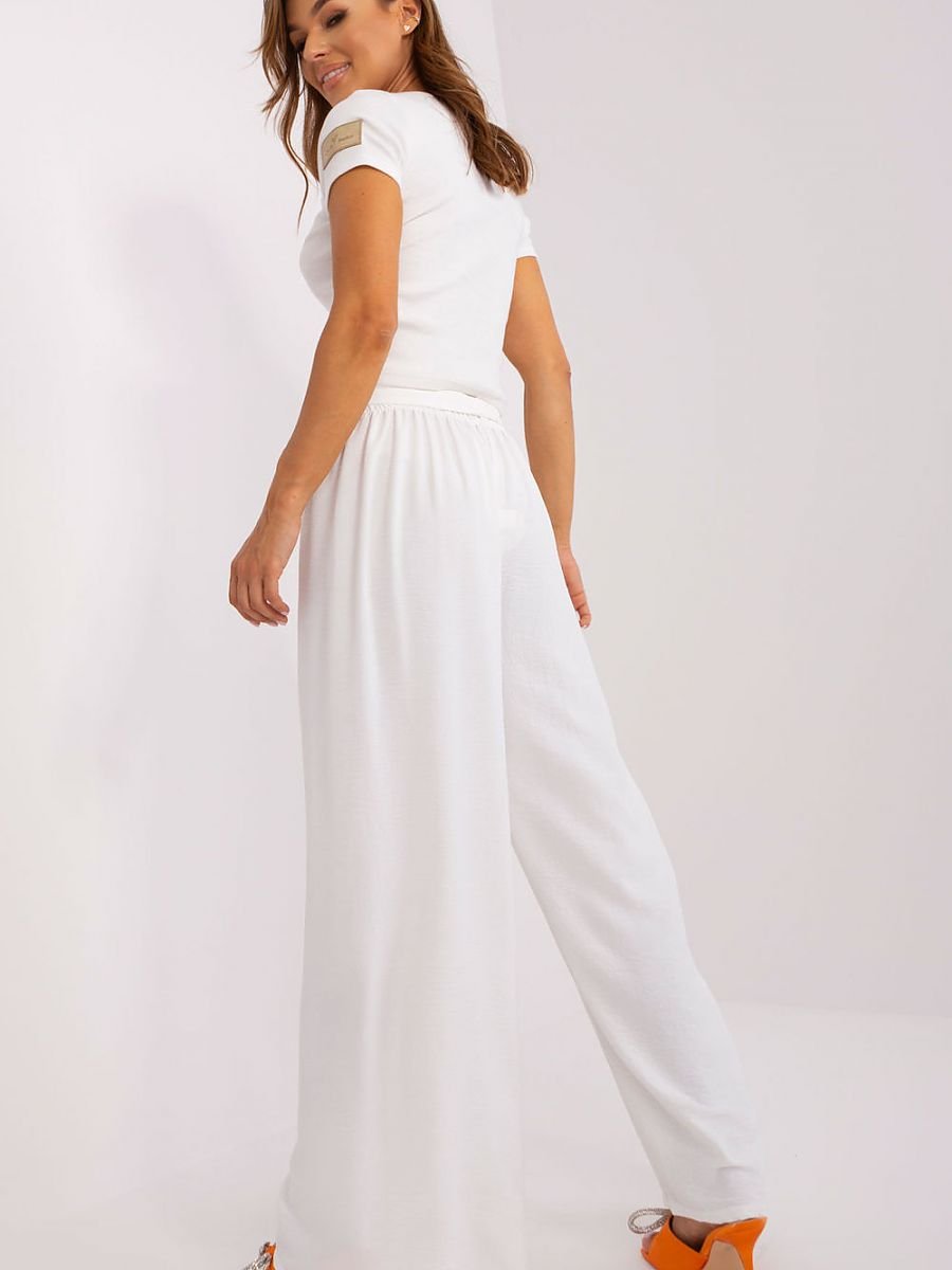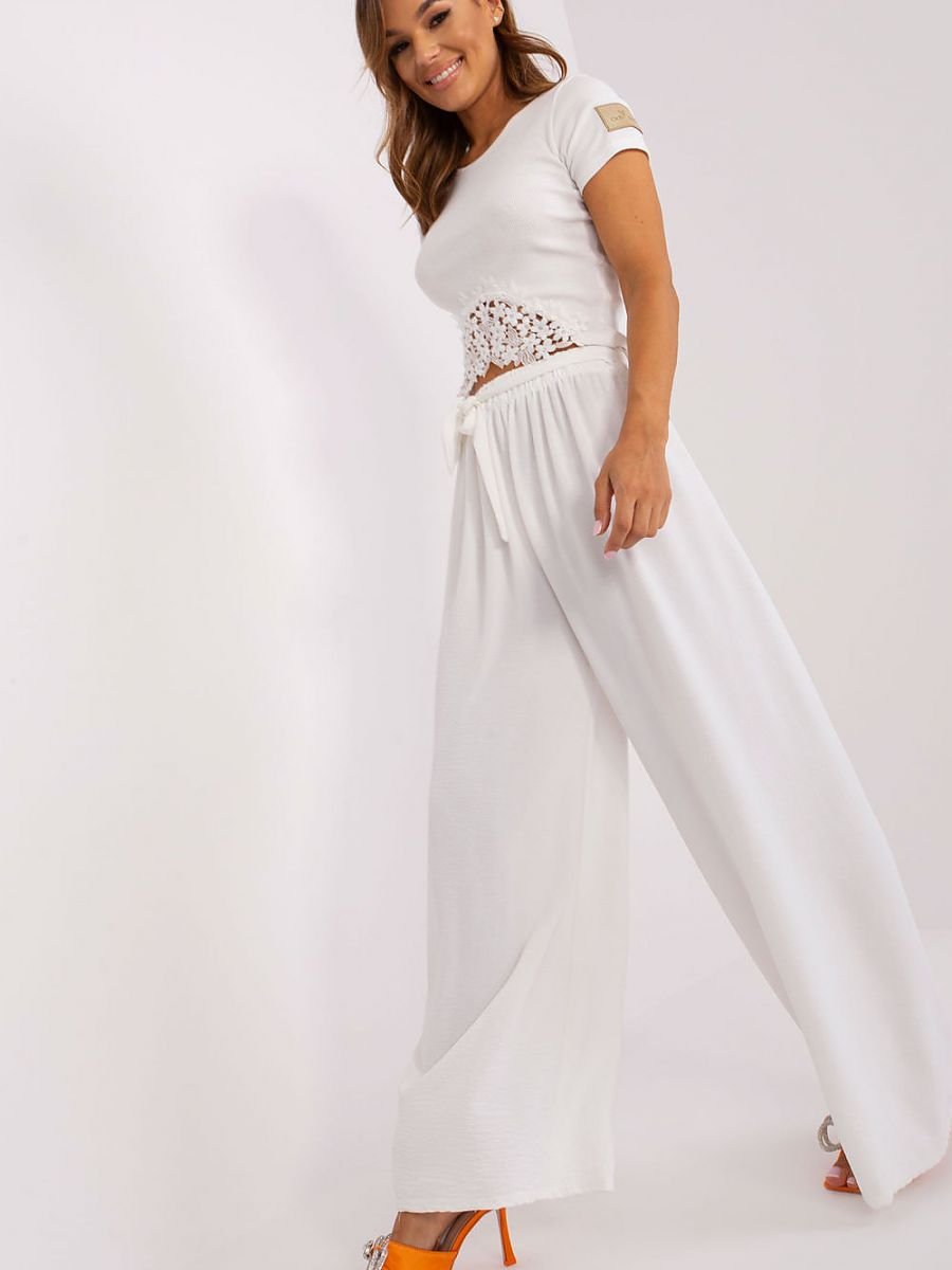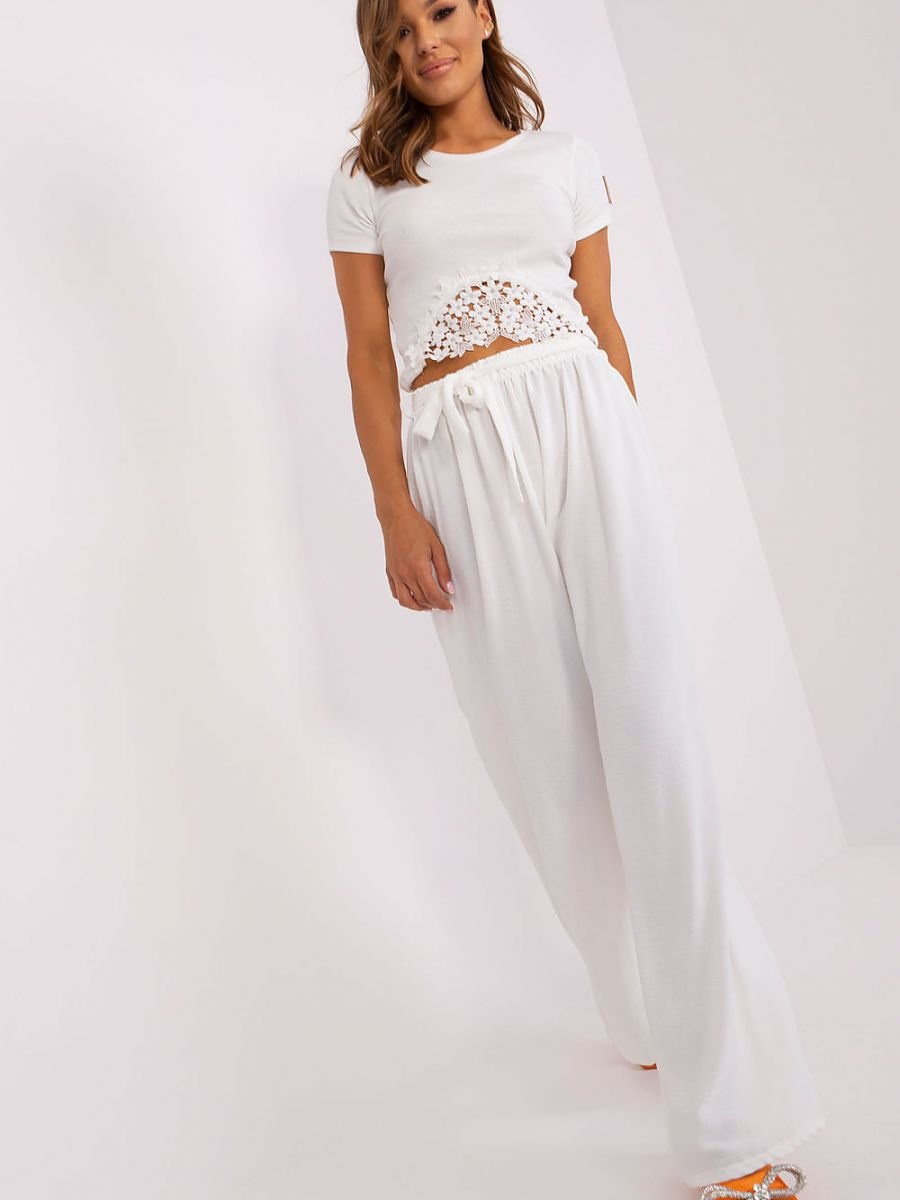 Letnie spodnie z szerokimi nogawkami oraz wiązaniem w pasie. Propozycja idealna na wiele okazji.