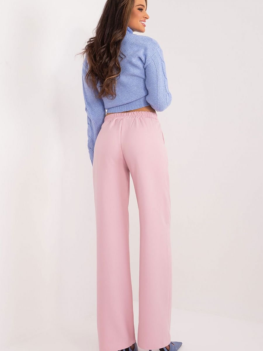Spodnie damskie bez zapięcia, wykonane z wysokiej jakości poliestru, to elegancka i klasyczna propozycja, idealna na różne okazje, zwłaszcza do pracy czy na spotkania wizytowe. Ich gładki materiał nadaje im wyrafinowanego charakteru, co sprawia, że stanowią doskonałe uzupełnienie eleganckiej garderoby. Wysoki stan w pasie dodaje spodniom elegancji, podkreślając talię i tworząc proporcje, które są zarówno stylowe, jak i wygodne. Styl nogawek jest prosty, co dodaje spodniom uniwersalności i ponadczasowego charakteru. Bez zapięcia, te spodnie są niezwykle komfortowe, a jednocześnie prezentują się elegancko i schludnie. Kieszenie boczne dodają praktyczności, umożliwiając przechowywanie drobnych przedmiotów czy wygodne schowanie rąk. Materiał poliestrowy jest nie tylko trwały, ale także łatwy w utrzymaniu. Sprawia, że spodnie prezentują się zawsze zadbane i eleganckie. To doskonały wybór dla kobiet ceniących sobie wygodę, jednocześnie dbających o estetykę swojego ubioru. Te eleganckie spodnie damskie bez zapięcia są znakomitym wyborem dla kobiet preferujących klasyczny, ale jednocześnie nowoczesny styl. Idealnie sprawdzą się w codziennych sytuacjach w pracy, a także na bardziej formalnych wydarzeniach, gdzie elegancja idzie w parze z wygodą.